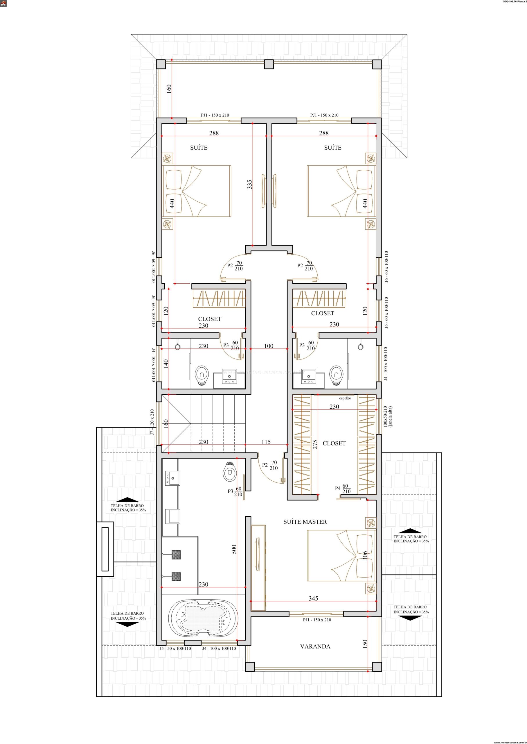 A área íntima, localizada no pavimento superior, foi estrategicamente posicionada para garantir máximo sossego. Este andar abriga três dormitórios, incluindo uma suíte master com dimensões generosas que oferece um refúgio pessoal completo. Os outros dois quartos, igualmente bem dimensionados, compartilham um banheiro social bem localizado. Todos os dormitórios são projetados para aproveitar ao máximo a iluminação e ventilação naturais, contribuindo para o bem-estar dos moradores. O layout assegura que os ruídos da área social não interfiram no descanso, criando um equilíbrio perfeito entre vida social e tranquilidade. Armários embutidos nos quartos maximizam o espaço e a organização.