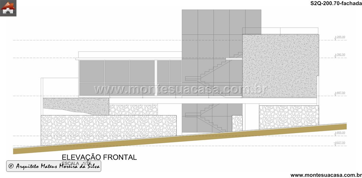 Esta casa moderna de 200,70 m² foi desenvolvida para um terreno em aclive acentuado, explorando desníveis como elementos arquitetônicos que valorizam a vista e ampliam a sensação de integração entre os pavimentos. A implantação distribui a garagem no subsolo e posiciona os ambientes principais no nível superior, oferecendo maior privacidade e uma relação direta com a área externa. O projeto utiliza linhas retas, grandes planos de vidro e volumes limpos, resultando em uma residência contemporânea e funcional.