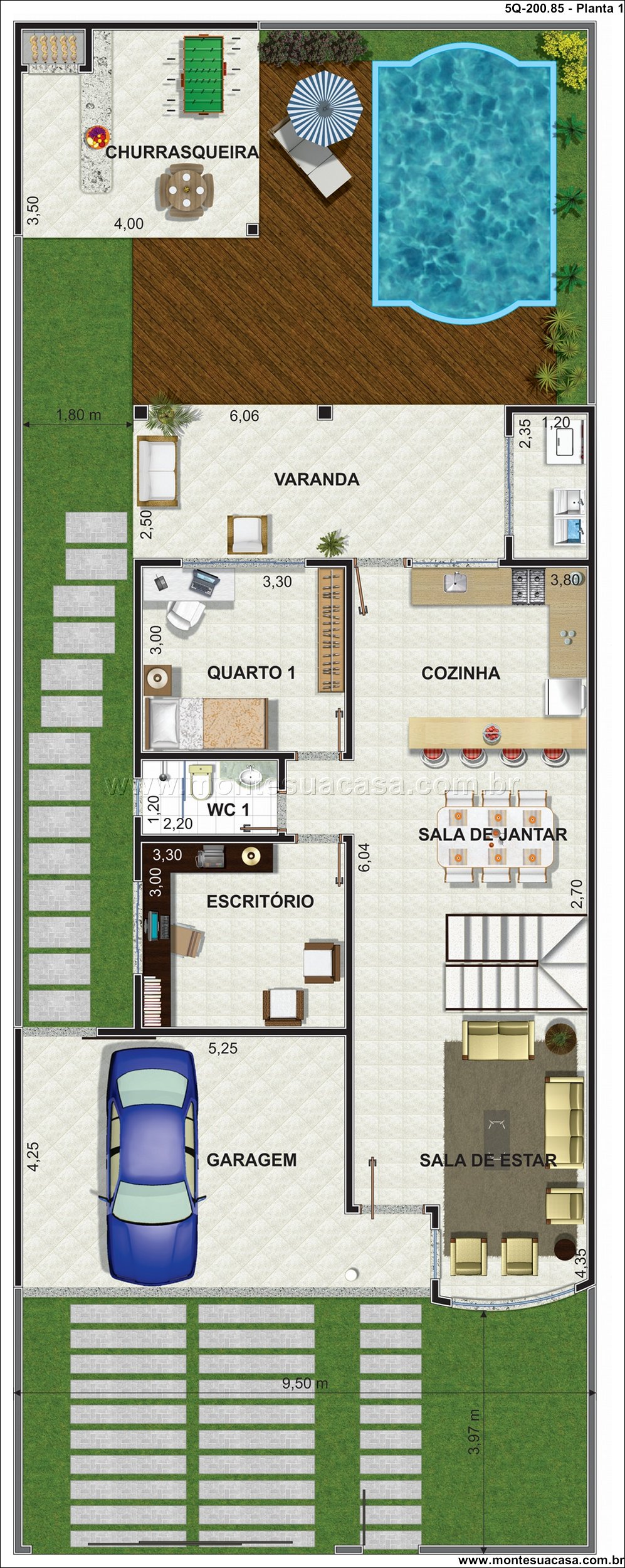 Este projeto arquitetônico de sobrado contemporâneo, com 200.85 metros quadrados, foi meticulosamente desenvolvido para oferecer o máximo em conforto, privacidade e sofisticação para você e sua família. A distribuição inteligente dos ambientes separa perfeitamente as áreas sociais dos espaços privativos, criando uma hierarquia espacial que valoriza cada momento. Consequentemente, a residência se torna um refúgio moderno e funcional para o dia a dia e para receber com elegância.