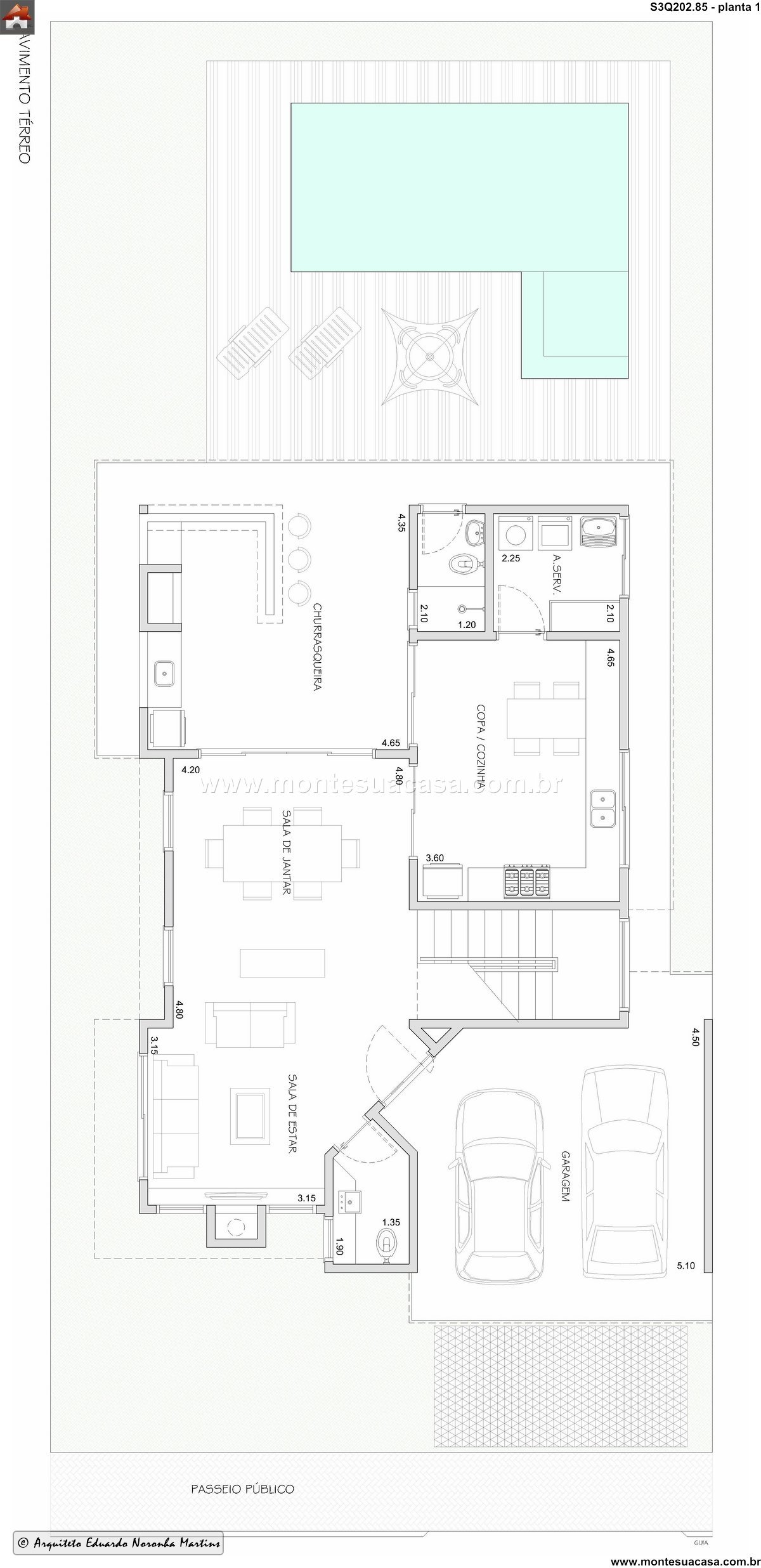 Este projeto de sobrado contemporâneo, com 202.86 metros quadrados de área construída, foi desenvolvido para famílias que buscam conforto, privacidade e espaços bem distribuídos. Com três quartos distribuídos entre os pavimentos, a residência oferece uma solução arquitetônica que harmoniza a funcionalidade do dia a dia com momentos de lazer e convívio. A fachada emprega linhas modernas e elementos que criam um diálogo visual dinâmico, enquanto o interior surpreende pela fluidez entre os ambientes.