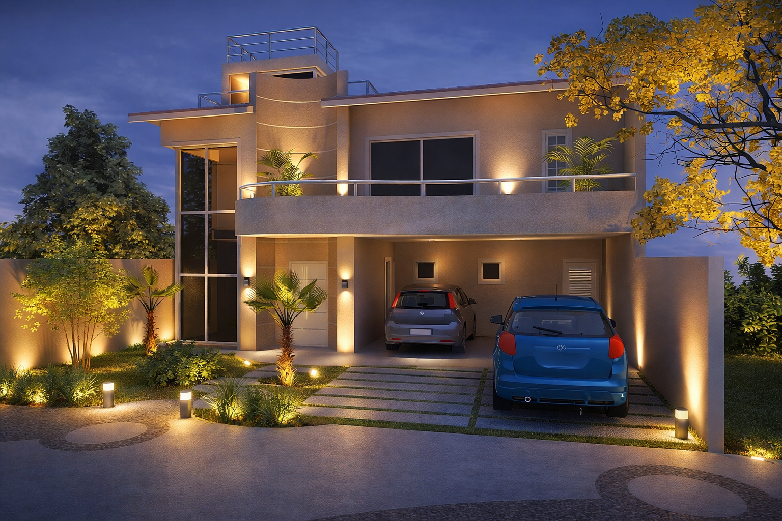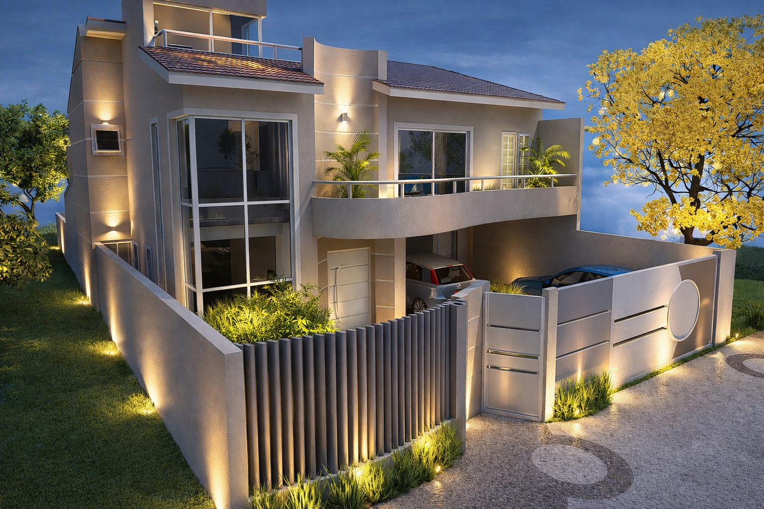 Materiais de alta qualidade, como porcelanatos de grande formato e revestimentos nobres, foram selecionados para conferir durabilidade e elegância. O projeto incorpora ainda soluções sustentáveis, promovendo a eficiência energética e o uso racional dos recursos naturais. Consequentemente, a residência não apenas impressiona visualmente, mas também se responsabiliza com o meio ambiente, assegurando um legado de valor e consciência para seus ocupantes.