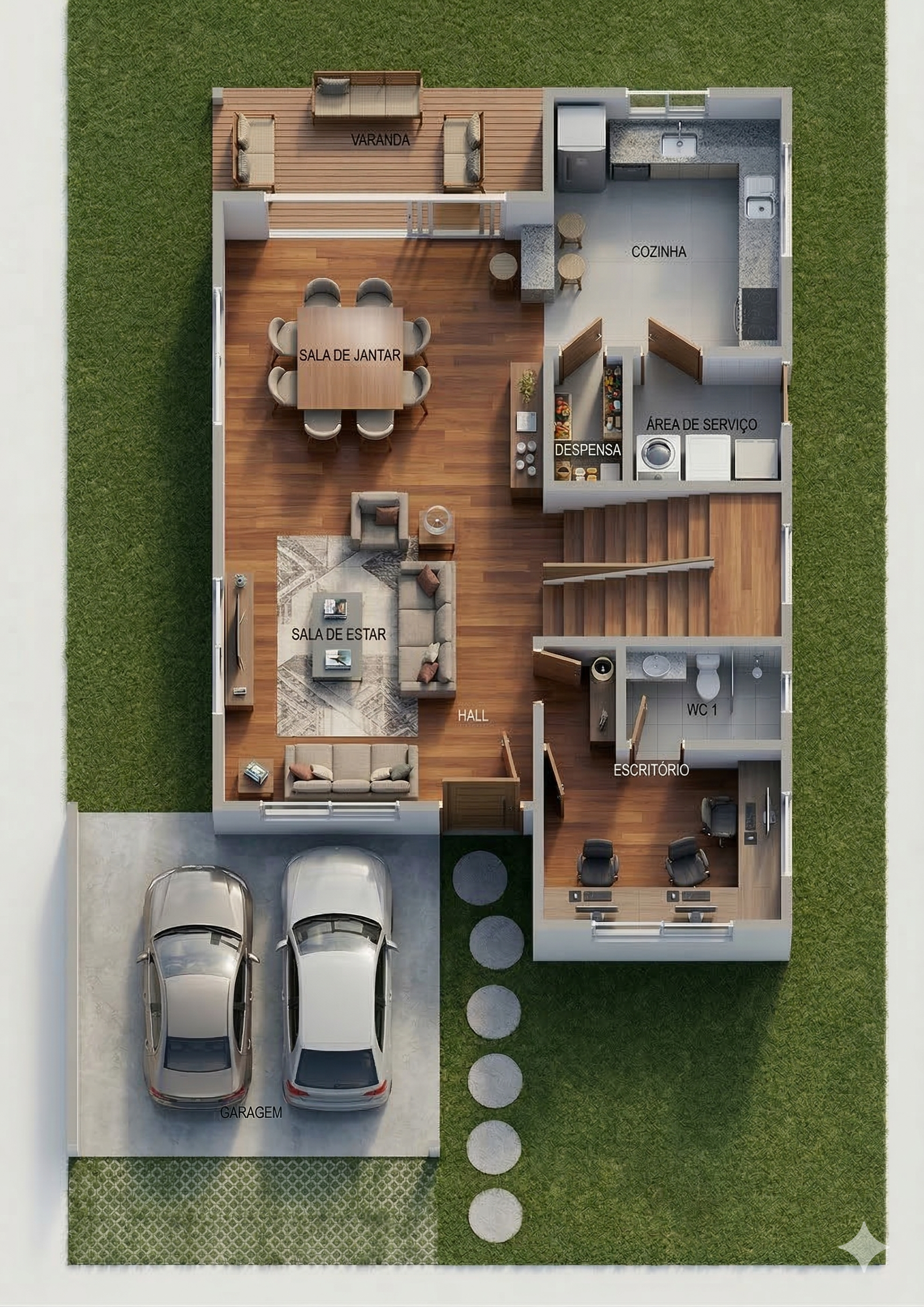 Design pensado para o bem-estar Cada detalhe do projeto foi desenvolvido para proporcionar bem-estar, praticidade e valorização do imóvel. A combinação entre áreas internas e externas, somada ao uso de materiais duráveis e esteticamente agradáveis, torna esta casa uma excelente opção para quem busca morar com estilo e funcionalidade.
