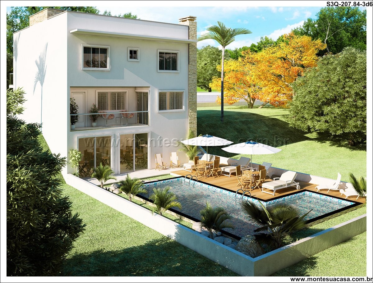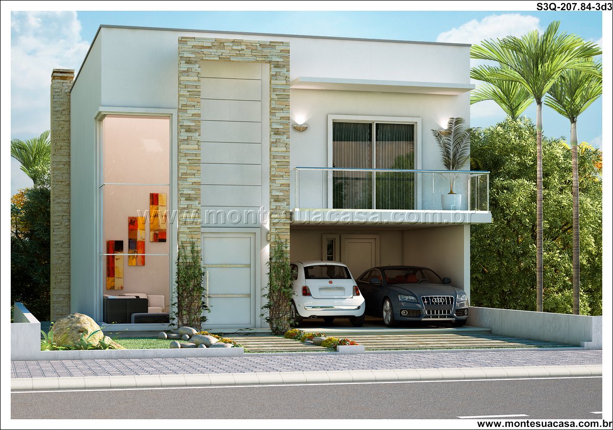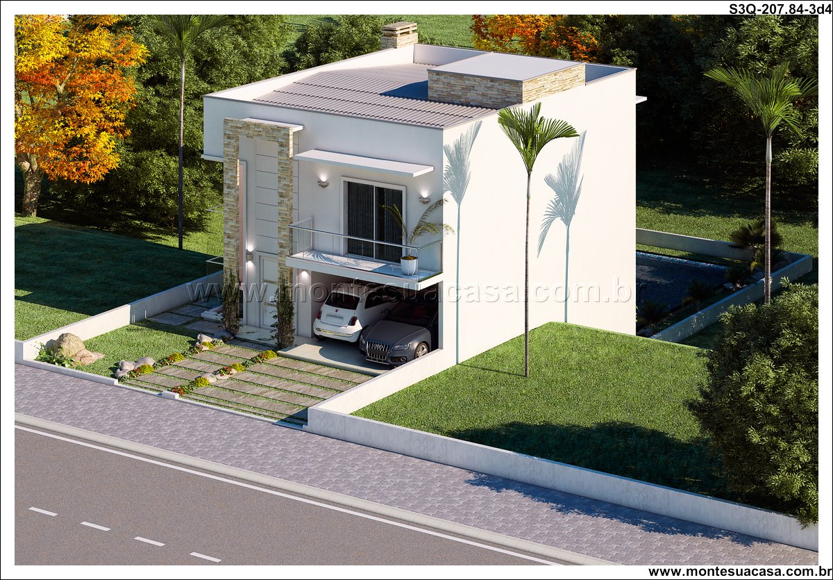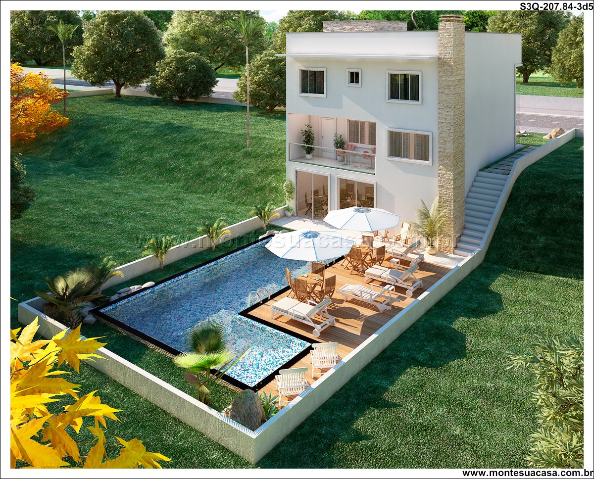 Este projeto de sobrado moderno foi meticulosamente planejado para terrenos em declive, transformando um desafio topográfico em uma vantagem arquitetônica única. Com 207.84m² de área construída, a residência se distribui em três níveis que se integram perfeitamente com o terreno, promovendo um diálogo harmonioso entre a construção e a paisagem natural. A fachada contemporânea emprega linhas clean e grandes vãos de vidro, garantindo iluminação natural abundante e ventilação cruzada em todos os ambientes.