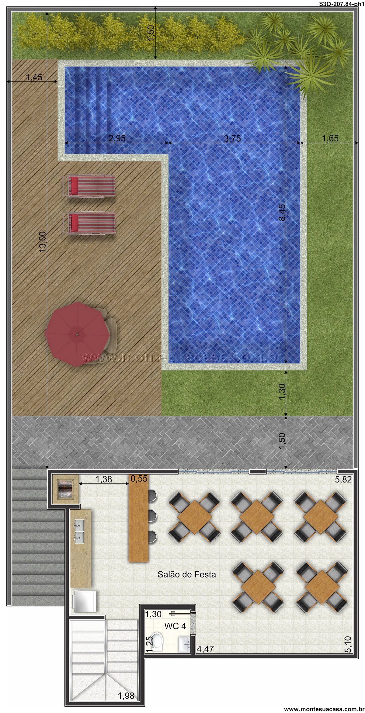 O projeto surpreende ao incluir um salão de festas dedicado, um espaço versátil que pode ser adaptado para cinema, fitness ou playground, atendendo a diversos momentos de lazer. Sacadas estrategicamente posicionadas em diferentes níveis ampliam a área de vivência externa, permitindo contemplar o jardim e a paisagem. A arquitetura valoriza os diferentes níveis do terreno, criando volumes dinâmicos e uma identidade visual marcante. Este sobrado prova que é possível unir estética moderna, conforto familiar e uma solução inteligente para lotes irregulares.