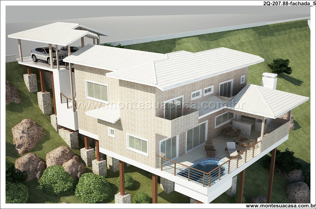Soluções técnicas para terrenos desafiadores A implantação sobre pilotis e muros de contenção garante estabilidade e aproveitamento do terreno. O projeto valoriza a arquitetura contemporânea com soluções técnicas eficientes, tornando-se ideal para quem busca construir em áreas com declive acentuado sem abrir mão do conforto, da funcionalidade e da beleza.