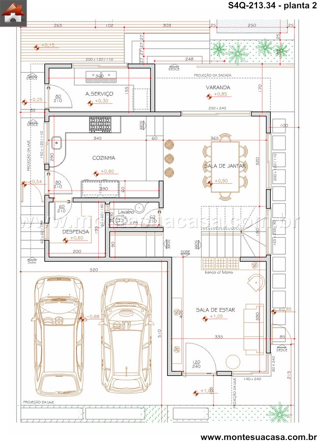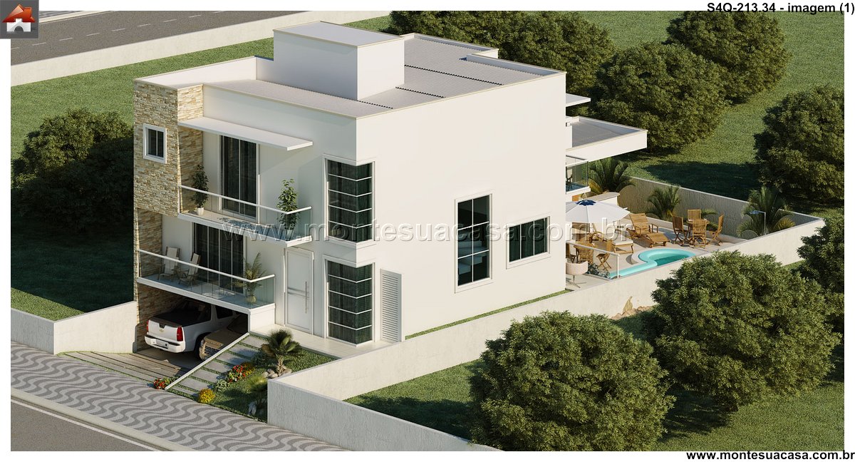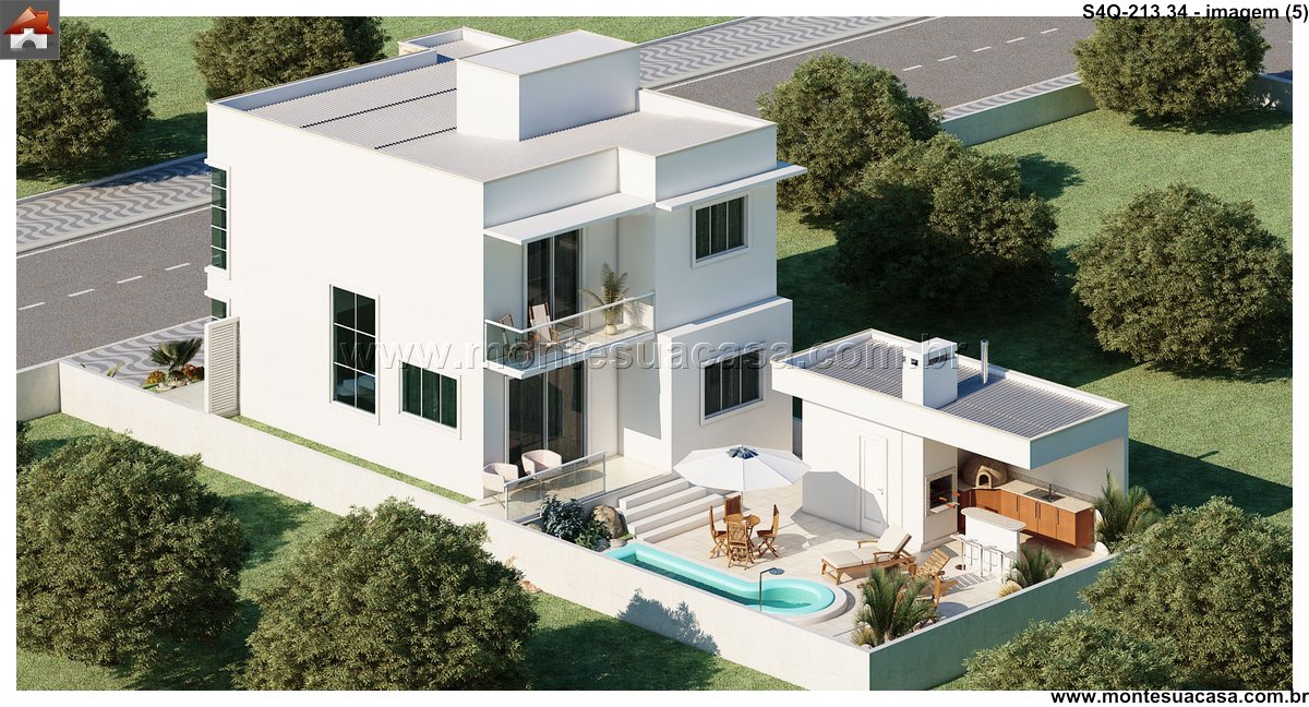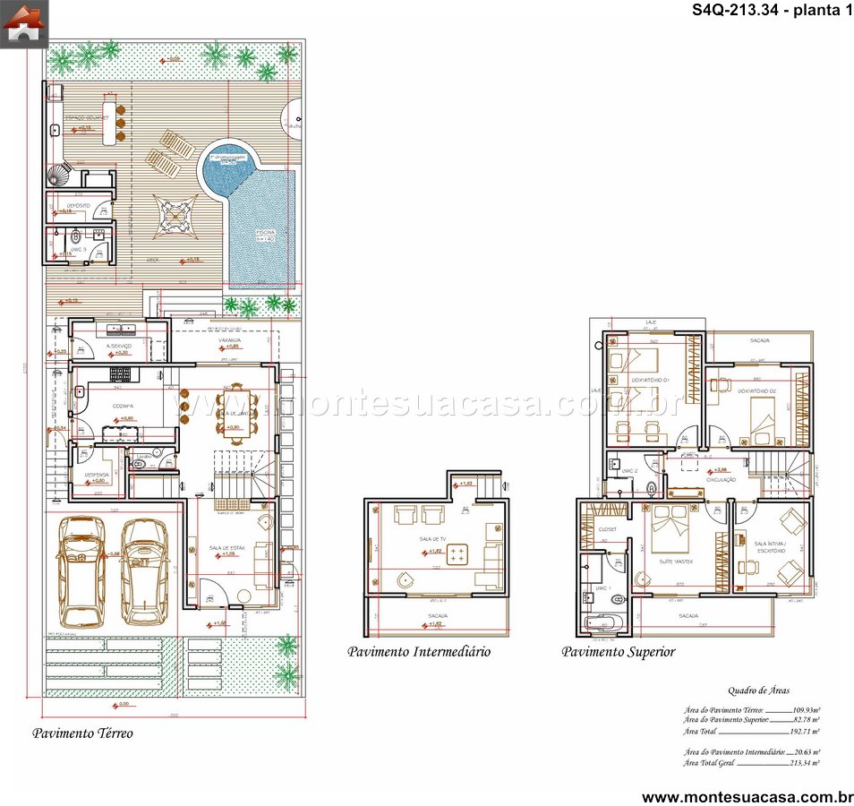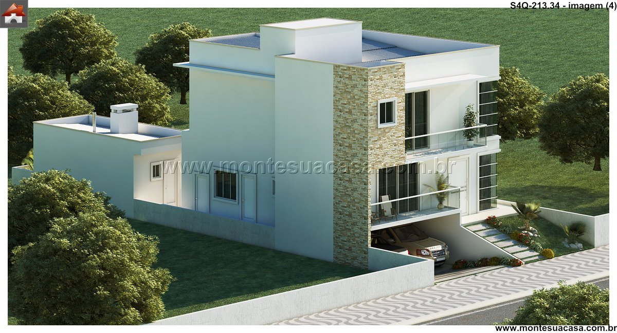 Este projeto de sobrado de 213.34 metros quadrados é um exemplo de como o design arquitetônico pode criar espaços que são ao mesmo tempo luxuosos e acolhedores. A planta é meticulosamente planejada para distribuir os ambientes de forma inteligente entre o pavimento intermediário e o superior, garantindo privacidade e uma fluidez encantadora. A fachada, apresentada nas imagens, sugere uma linguagem arquitetônica contemporânea, com linhas clean e elementos que valorizam a iluminação natural.