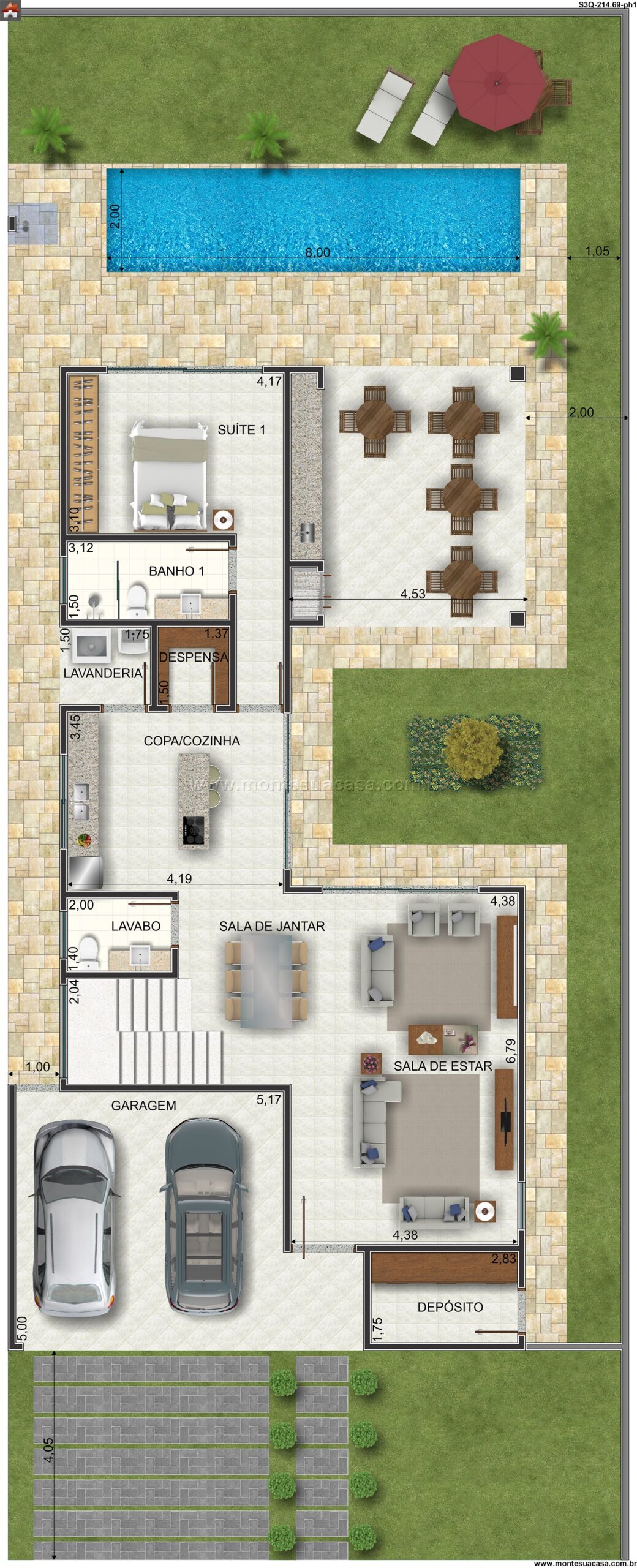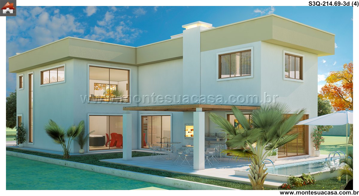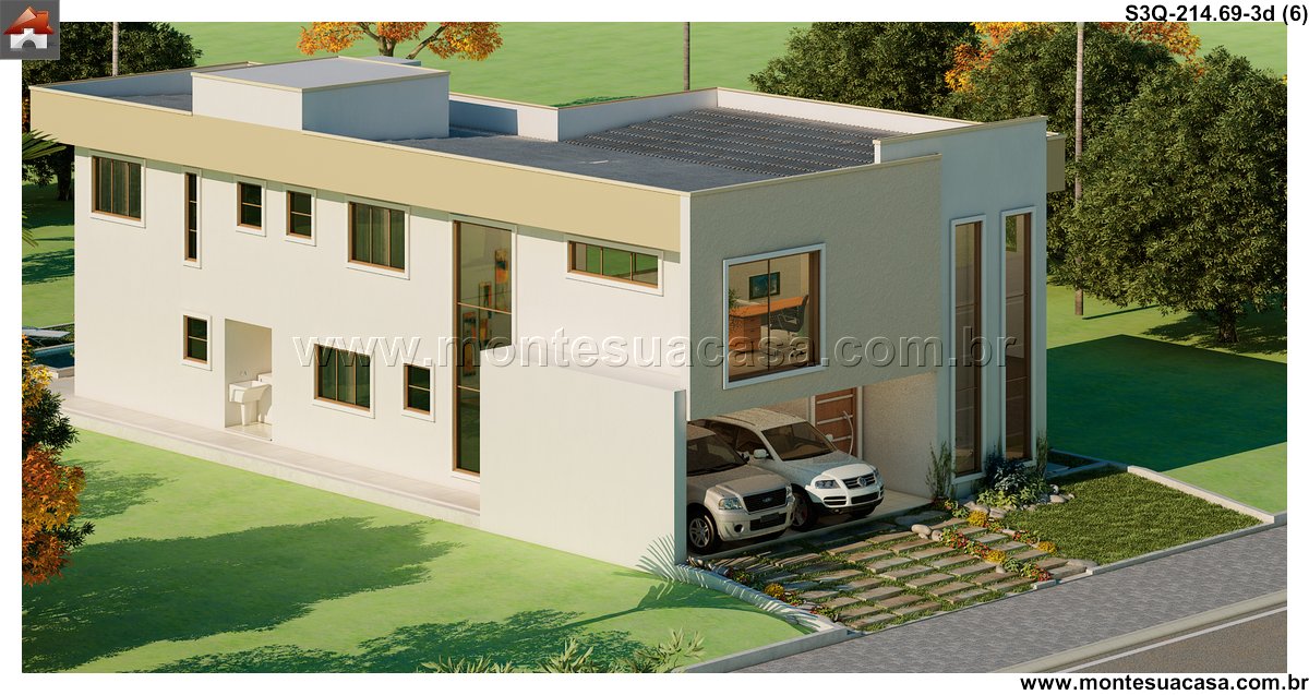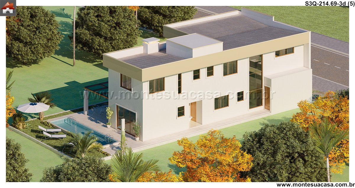 Este projeto arquitetônico moderno e funcional, com 214.69m² de área construída, foi meticulosamente planejado para oferecer conforto e praticidade para a família. A residência se desenvolve em dois pavimentos, otimizando o espaço e criando uma clara distinção entre os ambientes sociais e íntimos. A fachada, com linhas contemporâneas, promete uma experiência interior repleta de luz e aconchego.