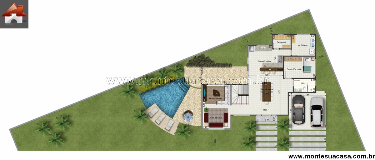 Este sobrado de 215,12m² foi desenvolvido para famílias que exigem mais do que um layout bonito: precisam de funcionalidade real, circulação inteligente e integração total entre ambientes internos e externos. O projeto privilegia conforto diário, amplitude visual e um quintal que realmente funciona para lazer, algo que muitos lotes simplesmente não conseguem entregar. Aqui, a planta é clara, direta e sem desperdícios de área.