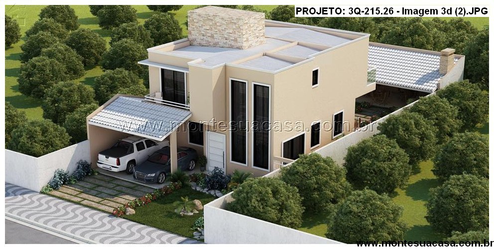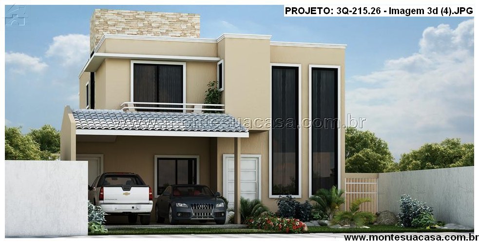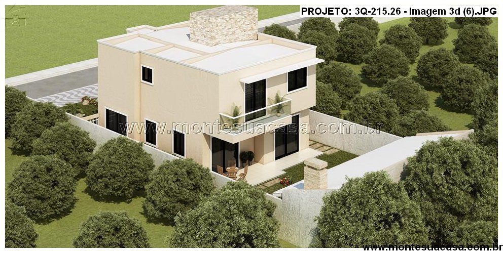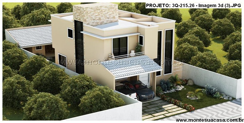 Este projeto arquitetônico moderno de 215,26m² foi desenvolvido para quem valoriza sofisticação, funcionalidade e integração com a natureza. A fachada contemporânea combina linhas retas, volumes bem definidos e materiais nobres como pedra natural, vidro e pintura em tons neutros. O telhado plano reforça o estilo moderno, enquanto o paisagismo valoriza o entorno com vegetação ornamental e caminhos em pedra.