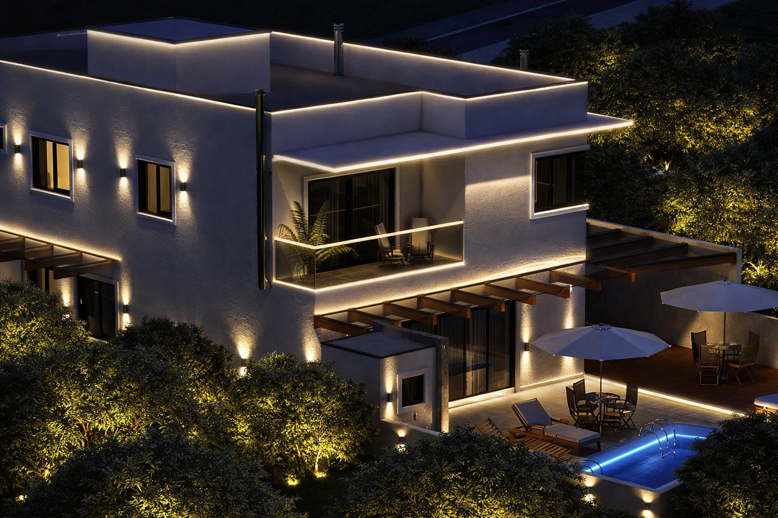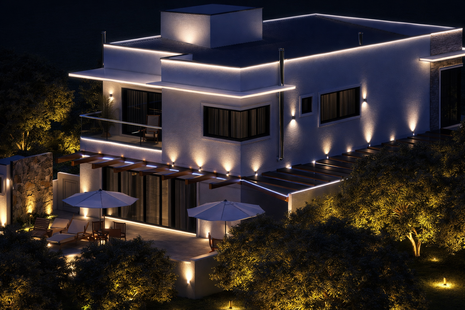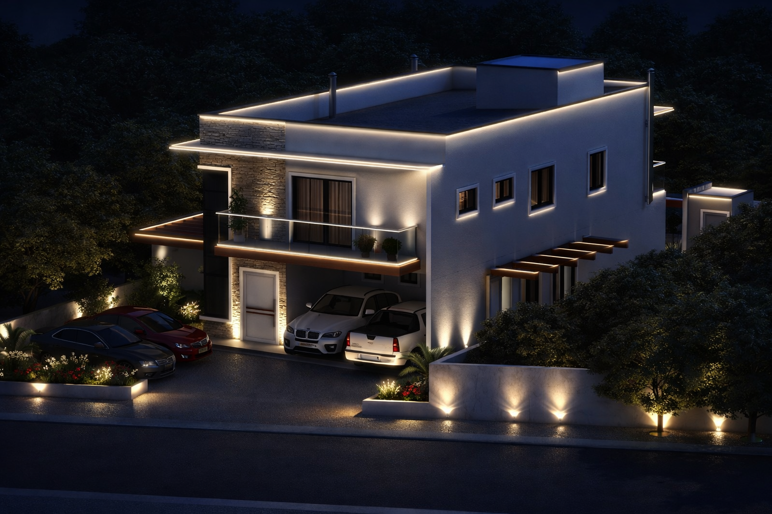 O projeto 3Q-215.29 é uma residência de dois pavimentos com 215,29m² de área construída, ideal para famílias que valorizam sofisticação, funcionalidade e lazer. A fachada moderna combina revestimentos em pedra natural, pintura branca e grandes aberturas em vidro, criando um visual elegante e acolhedor.