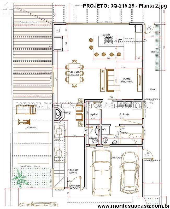 A planta também inclui home theater, academia, lavanderia, depósito e suíte de apoio, garantindo versatilidade e praticidade no dia a dia.