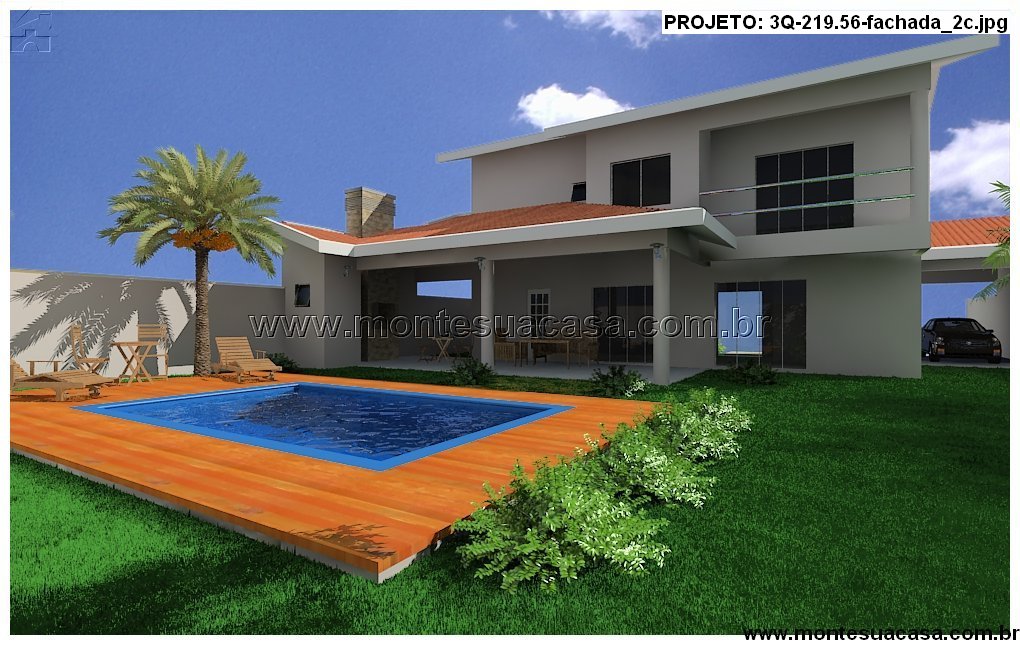 Este projeto arquitetônico de 219,56 m² combina sofisticação, funcionalidade e integração com áreas externas. Ideal para famílias que valorizam conforto e estilo, a proposta apresenta uma fachada contemporânea com telhado misto, detalhes em pedra natural e paisagismo tropical.