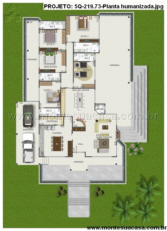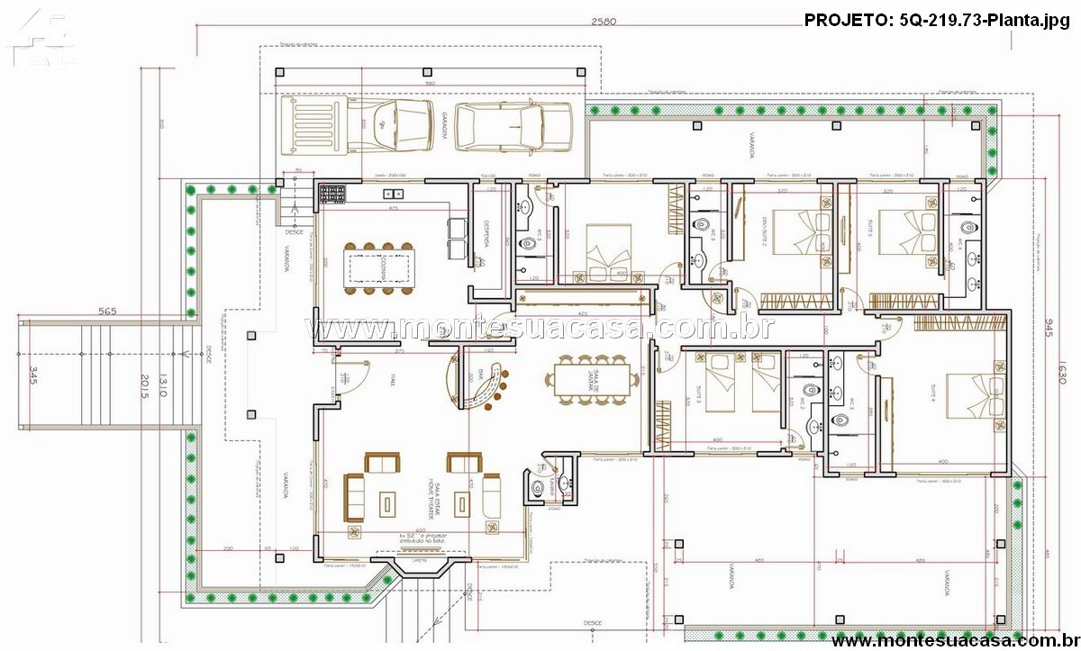 Este projeto residencial de 219.73m² apresenta uma planta meticulosamente planejada que combina luxo, funcionalidade e conforto. A distribuição dos ambientes foi pensada para oferecer privacidade e conveniência, tornando esta residência ideal para famílias que buscam um espaço amplo e bem distribuído. Com um total de oito suítes, a casa oferece versatilidade para hospedagem e acomodação, garantindo conforto para todos os residentes.