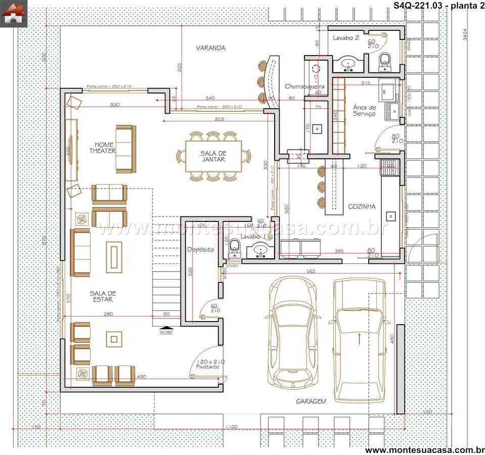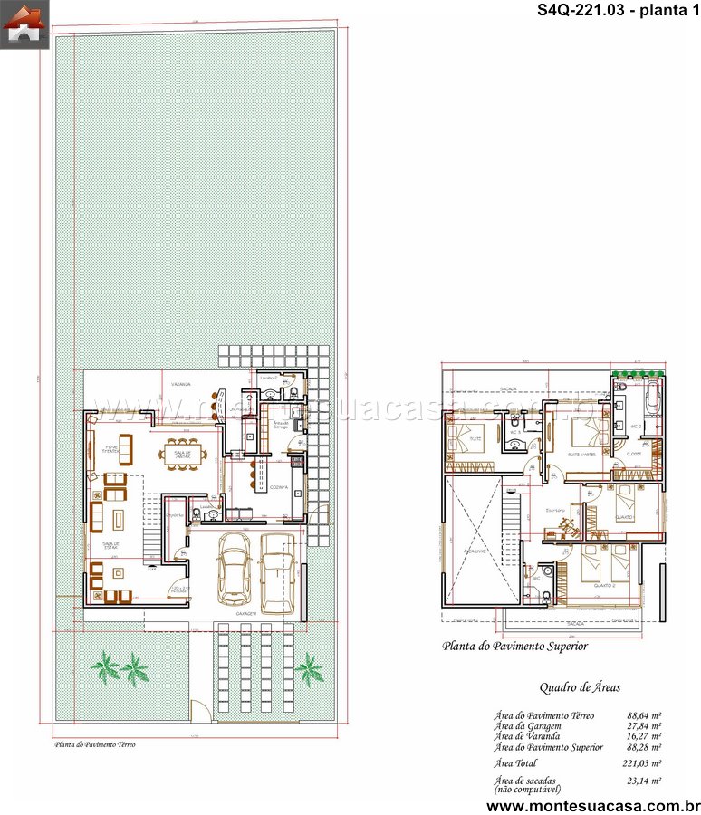 Este sobrado contemporâneo de 221.03m² foi meticulosamente planejado para oferecer uma experiência de vida única, harmonizando espaços funcionais com um design arrojado. A planta baixa revela uma distribuição inteligente dos ambientes, promovendo fluidez e integração entre os setores sociais e privativos. A fachada, concebida com linhas modernas, estabelece um diálogo entre materiais e texturas, conferindo personalidade e valor estético ao conjunto.
