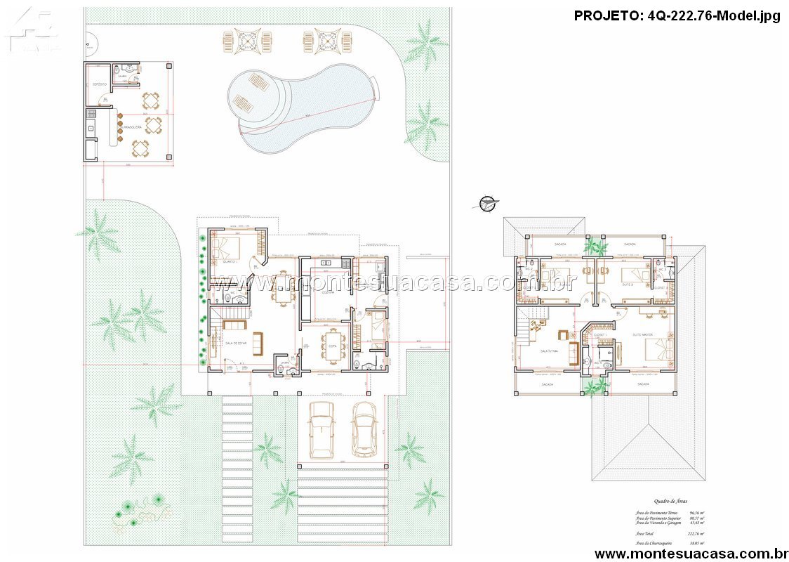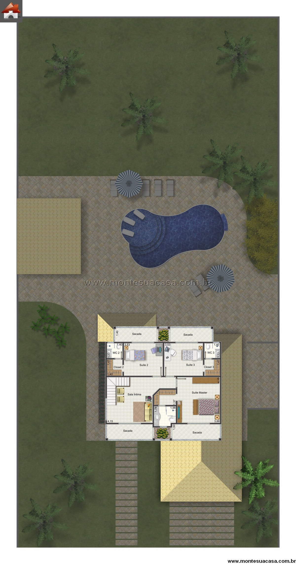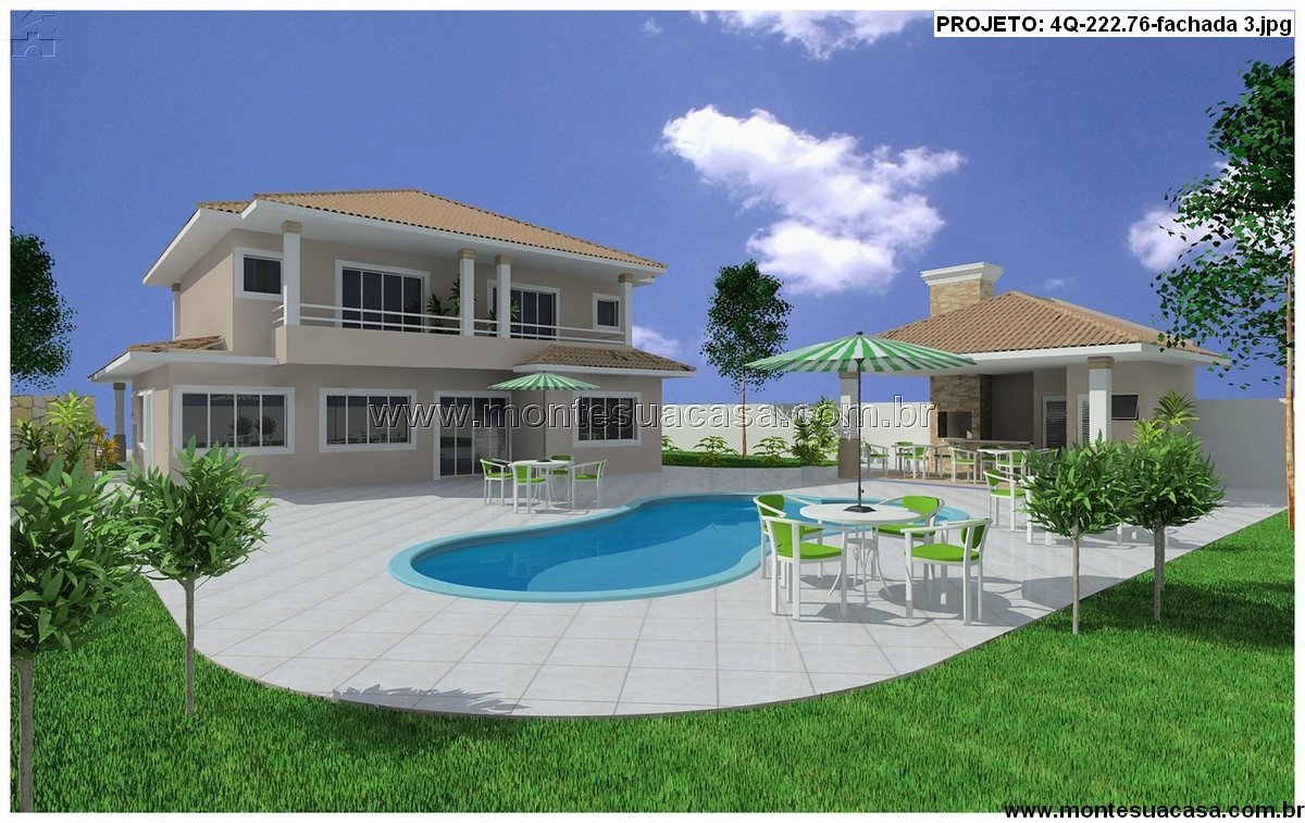 Este projeto de 222,76 m² foi pensado para quem exige funcionalidade, integração e áreas externas que realmente fazem diferença no dia a dia. O sobrado reúne quatro suítes, espaços sociais amplos e um lazer completo com piscina e área gourmet independente, criando um conjunto equilibrado entre privacidade, convivência e valorização do terreno.