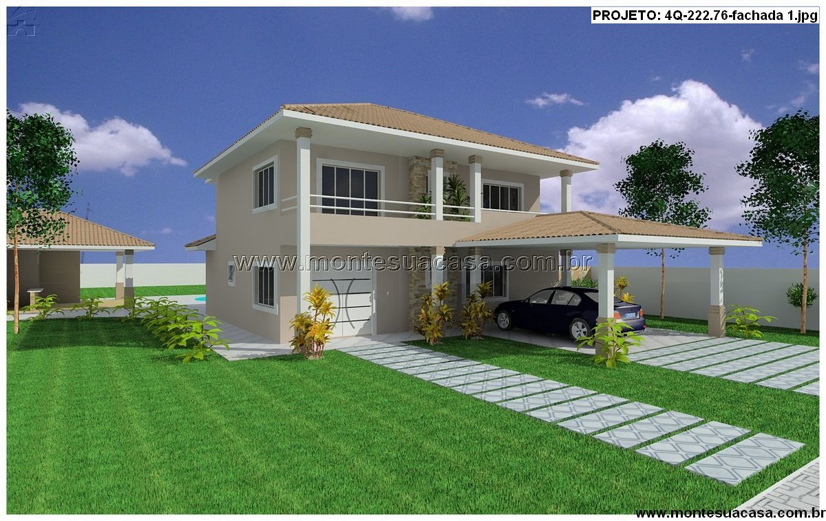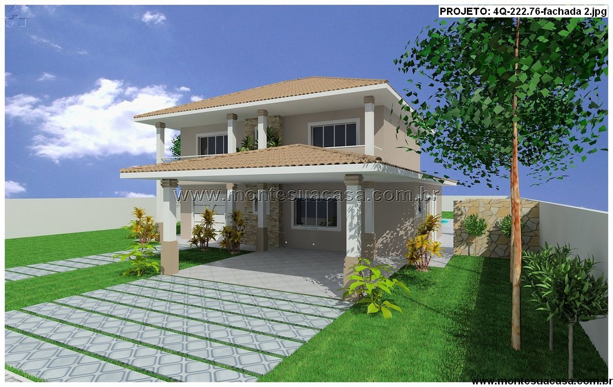 O conjunto gera uma composição sólida, valorizando o imóvel e destacando-se em terrenos amplos.