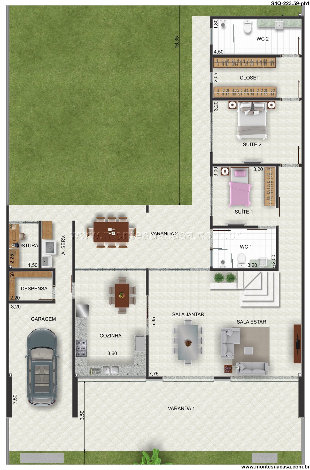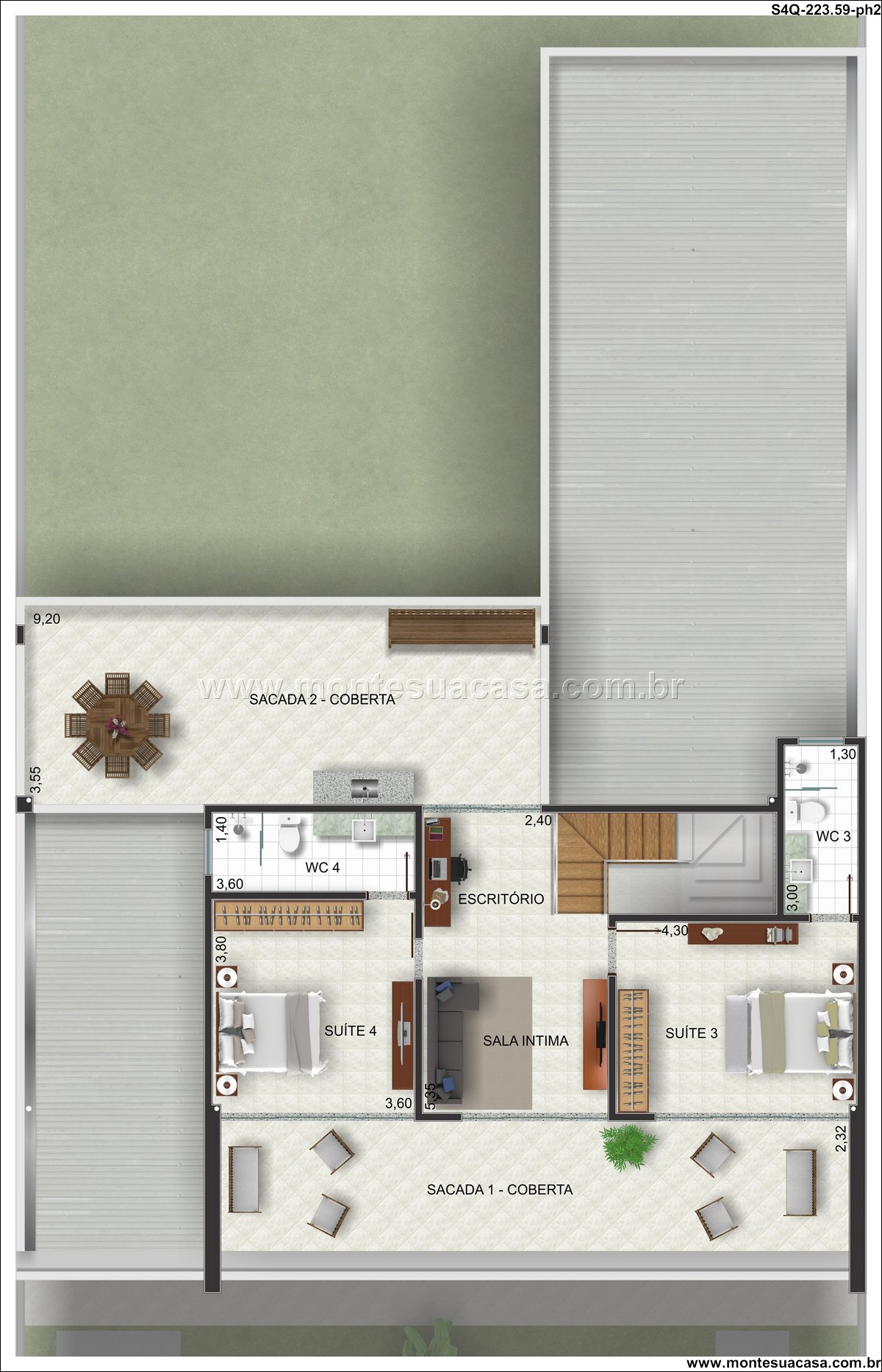 Um dos grandes diferenciais deste projeto são as suas sacadas cobertas. A Sacada 1 e a Sacada 2, ambas cobertas, oferecem extensões valiosas do living. Estes espaços permitem que você desfrute do ar livre independentemente das condições climáticas, seja para uma refeição ao ar livre ou simplesmente para relaxar. Com uma área de 9,20m² e 1,40m² respectivamente, elas ampliam visualmente o ambiente interno e criam uma transição suave entre o interior e o exterior, enriquecendo a experiência de morar.
