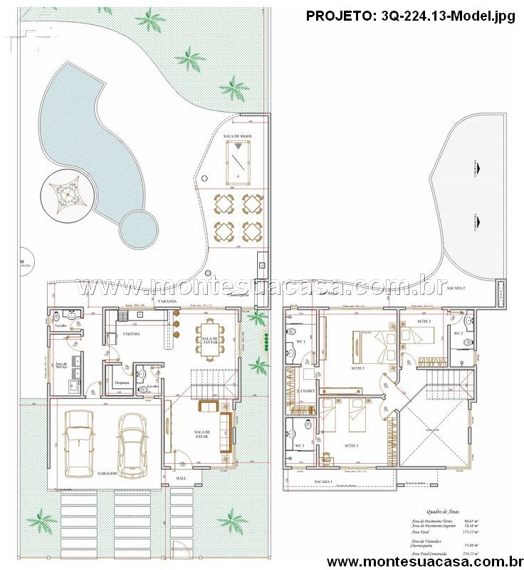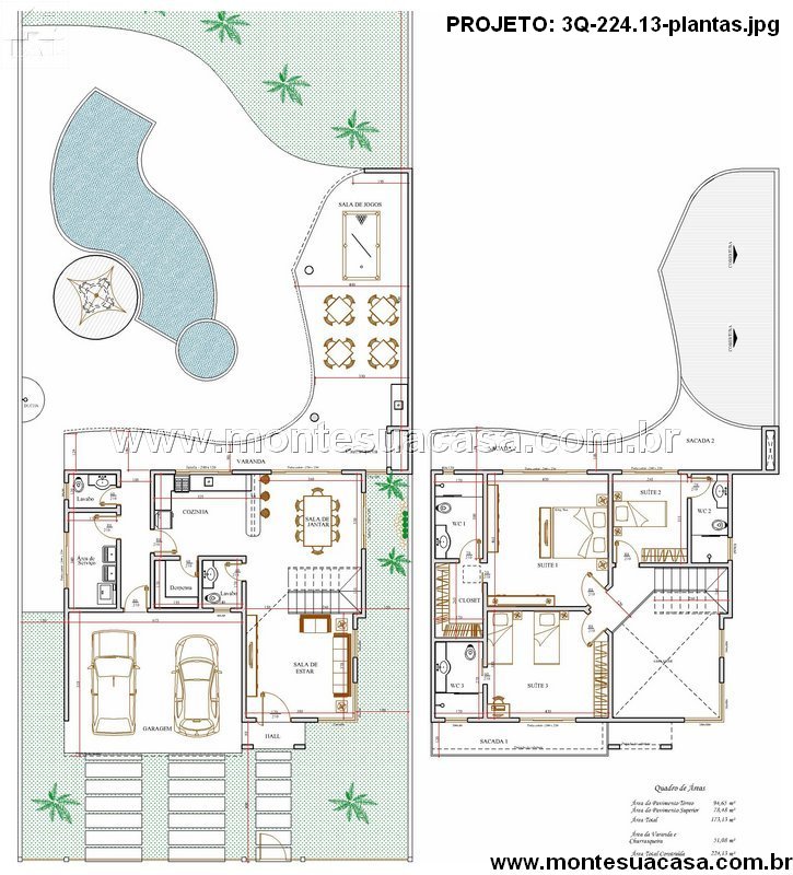 Este projeto moderno de dois pavimentos, com área total construída de 224,13 m², oferece uma experiência residencial completa e sofisticada.