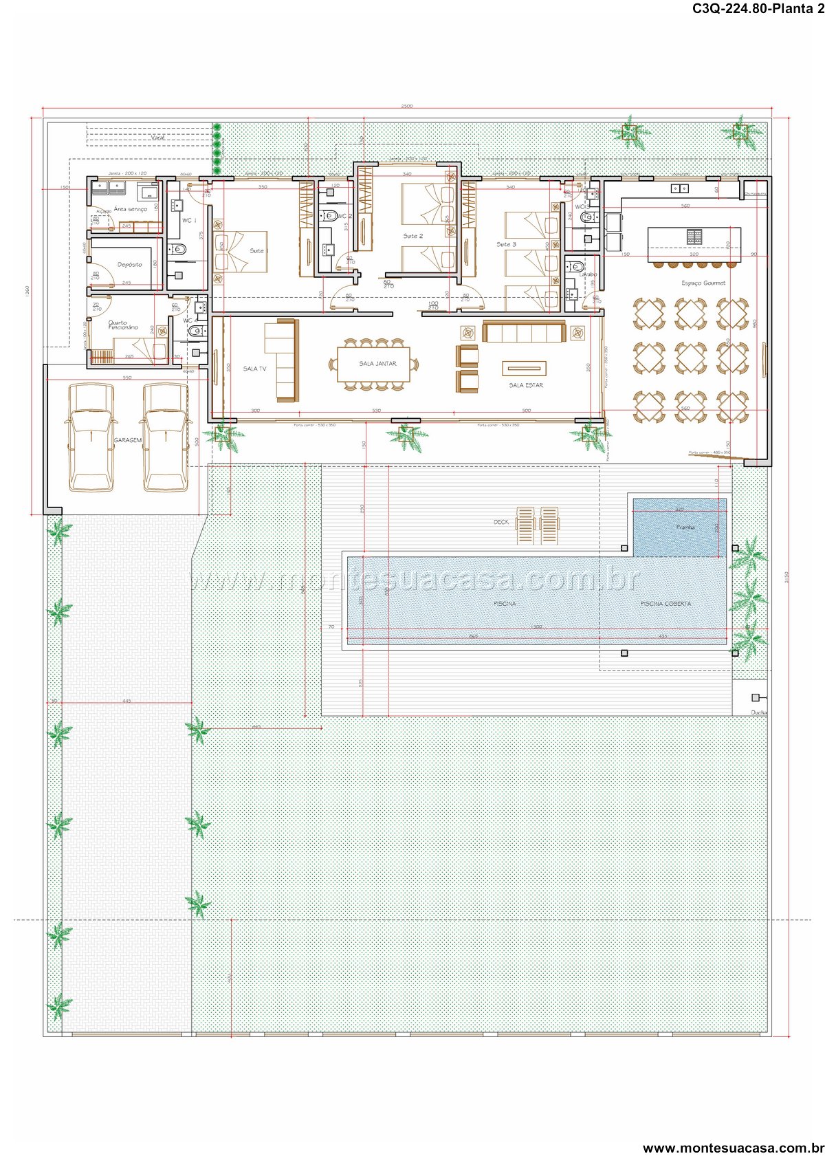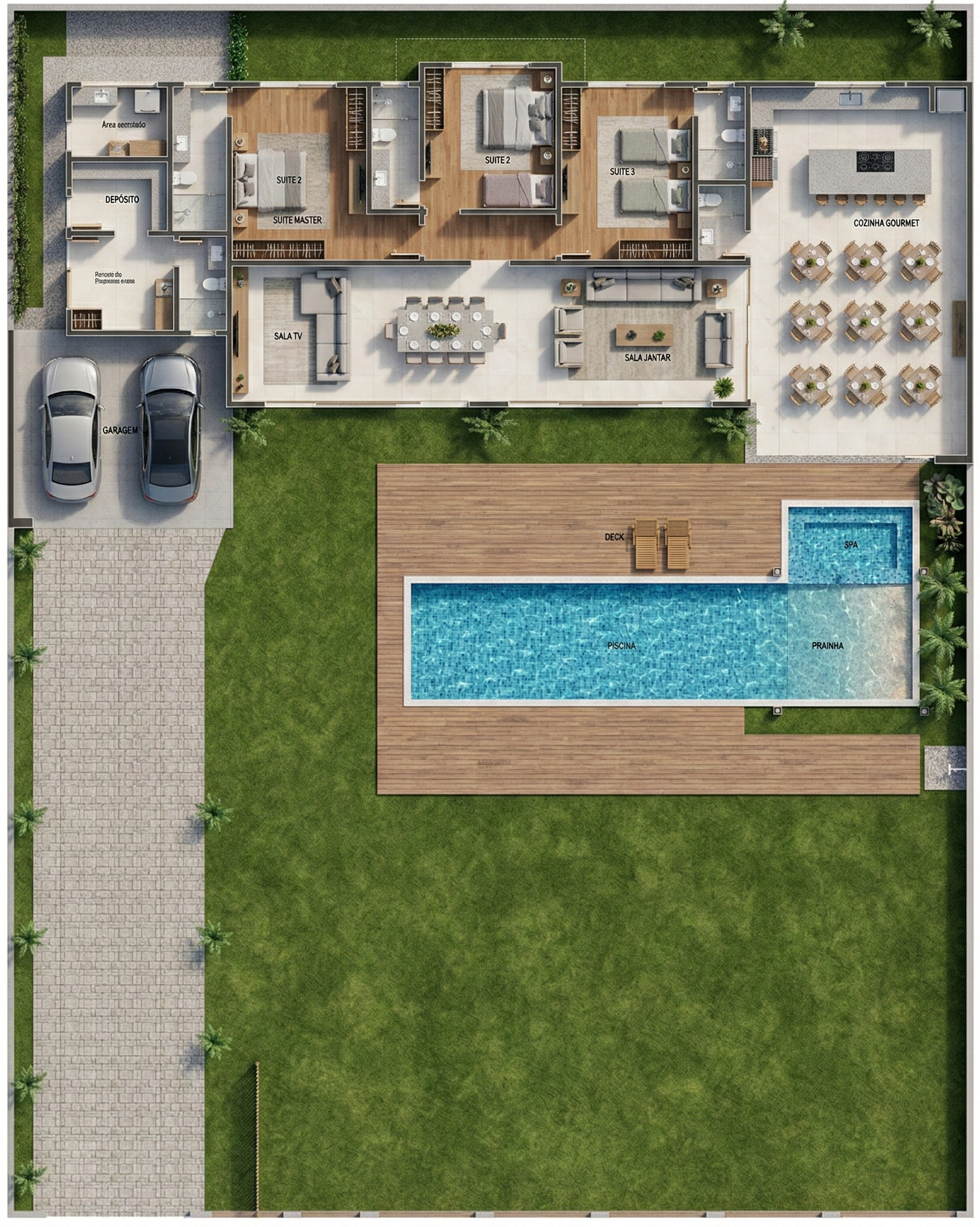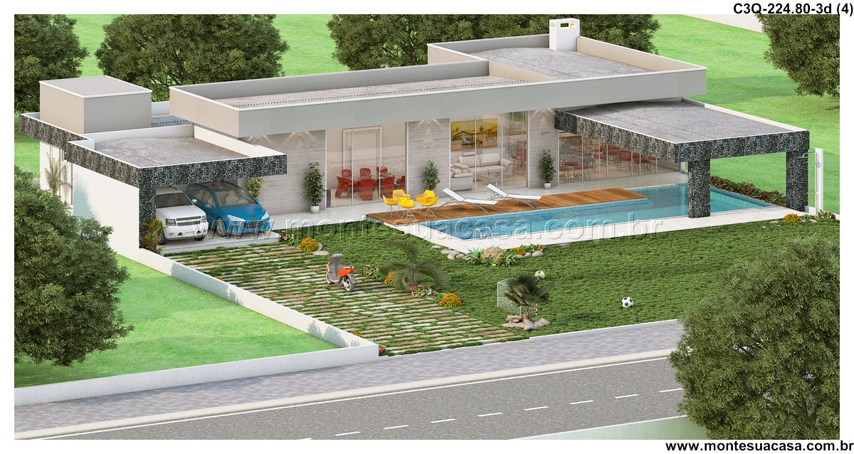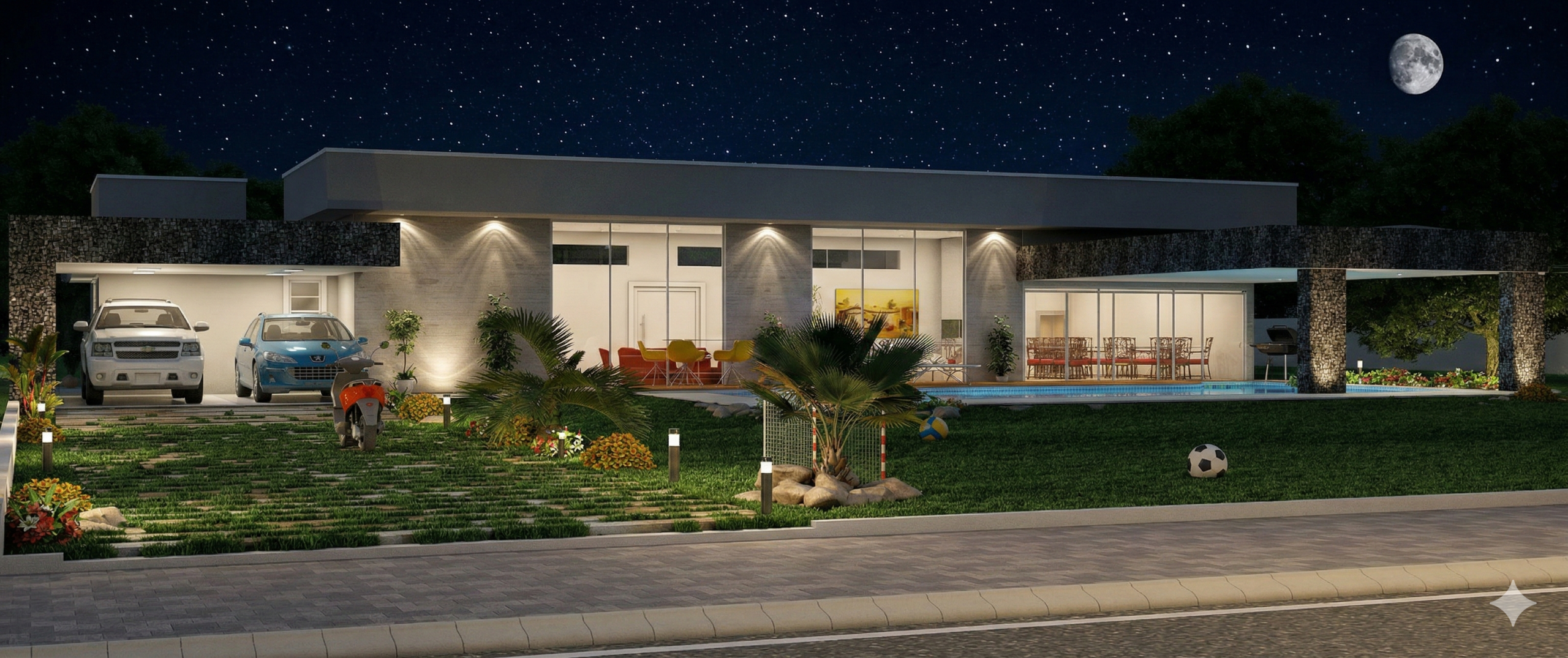Este projeto de casa térrea moderna oferece uma combinação perfeita entre funcionalidade, conforto e estética contemporânea. Com 224,80m² de área construída, o layout foi cuidadosamente planejado para atender famílias que valorizam espaços integrados e momentos de lazer em casa.