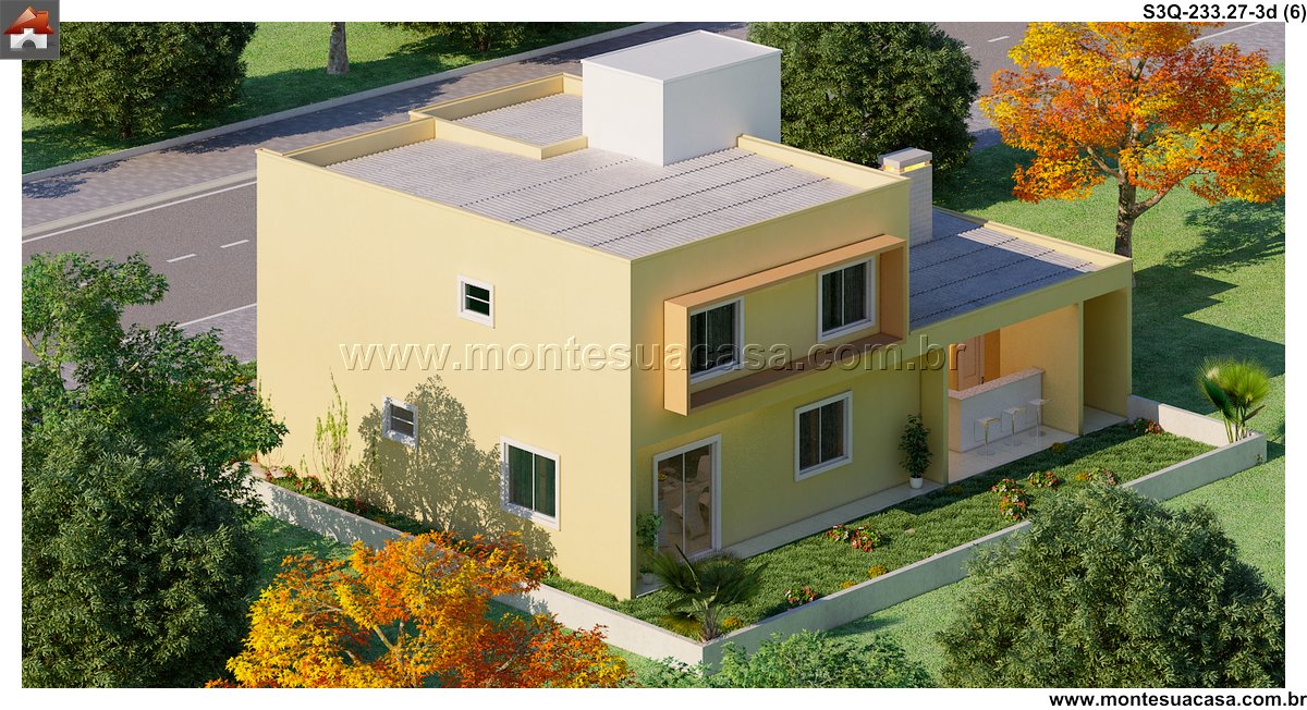 Este sobrado contemporâneo de 233.27m² materializa uma visão moderna de moradia, distribuída em dois pavimentos e abrigando três confortáveis quartos. A arquitetura privilegia linhas limpas e volumes bem definidos, resultando em uma fachada com personalidade marcante. A integração entre os ambientes internos e externos é um princípio fundamental, garantindo amplitude visual e uma constante entrada de luz natural. Consequentemente, a casa respira uma atmosfera acolhedora e ao mesmo tempo sofisticada.