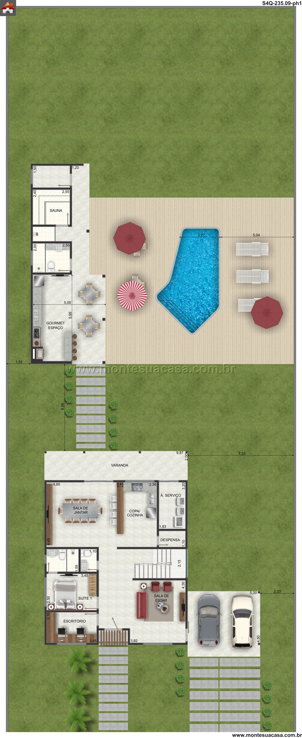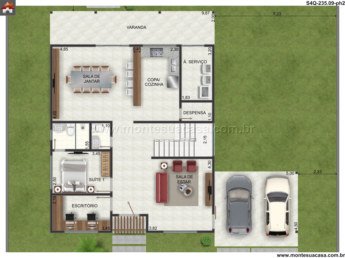 Este sobrado moderno de 235.09m² representa a perfeita síntese entre funcionalidade e elegância contemporânea. Desenvolvido para oferecer o máximo em conforto e praticidade, a residência se distribui em dois pavimentos, organizando os ambientes de forma inteligente e harmoniosa. Cada detalhe foi meticulosamente planejado para criar uma jornada residencial única, onde a luz natural e a circulação fluida se tornam elementos centrais da composição arquitetônica. A integração entre os espaços promove uma sensação de amplitude, enquanto os materiais selecionados garantem durabilidade e um acabamento refinado.