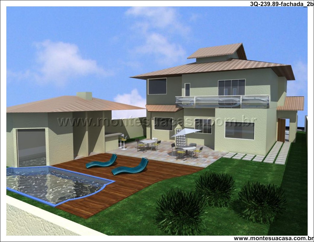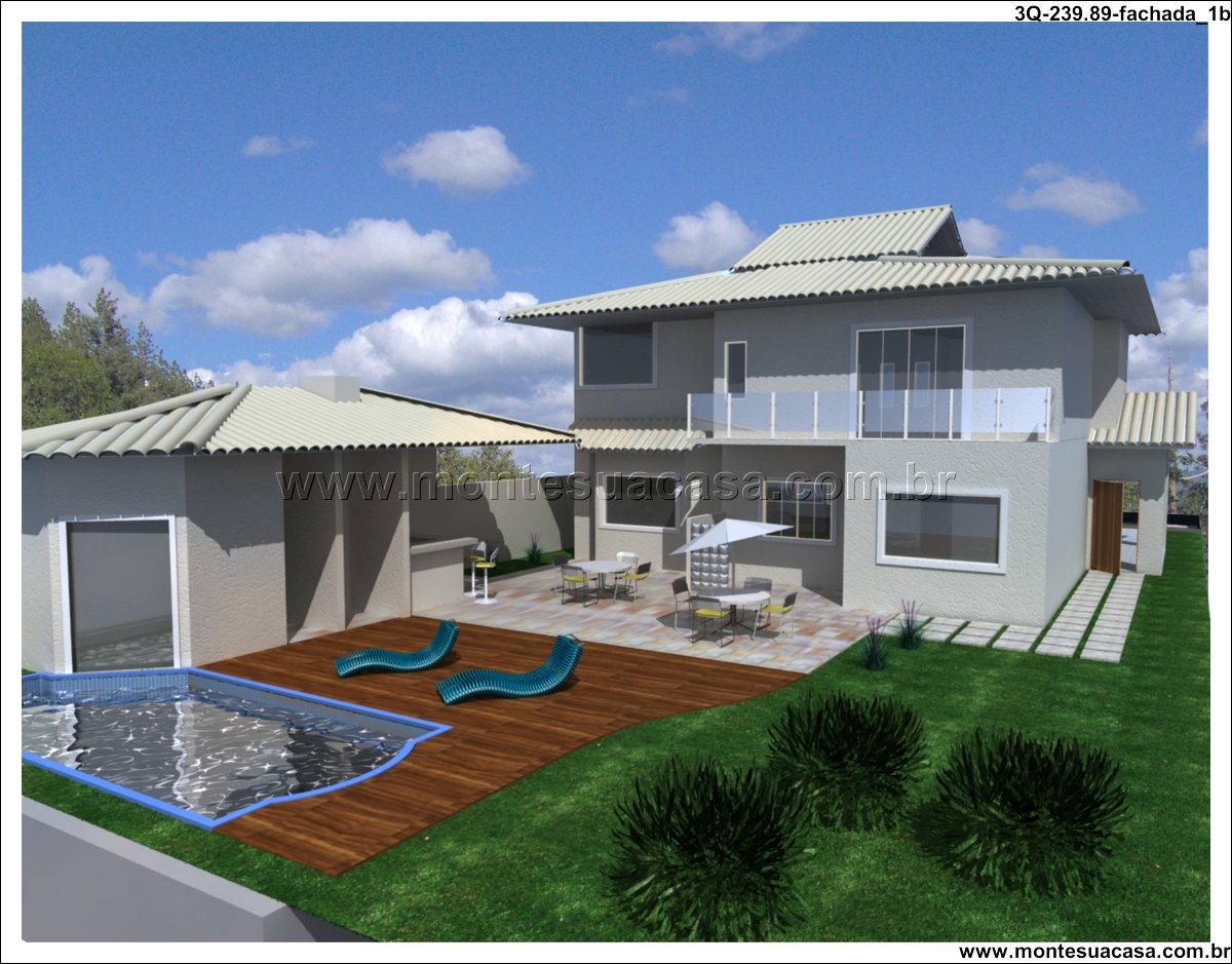 Descrição completa com subtítulos Este projeto de sobrado de 3 quartos com 239,89m² é a escolha perfeita para quem busca conforto, lazer e sofisticação em um único imóvel. Com fachada contemporânea, o design valoriza linhas limpas, materiais nobres e integração entre os ambientes internos e externos. A composição arquitetônica inclui elementos em pedra natural, amplas janelas de vidro e sacada com guarda-corpo transparente, criando uma estética leve e elegante.