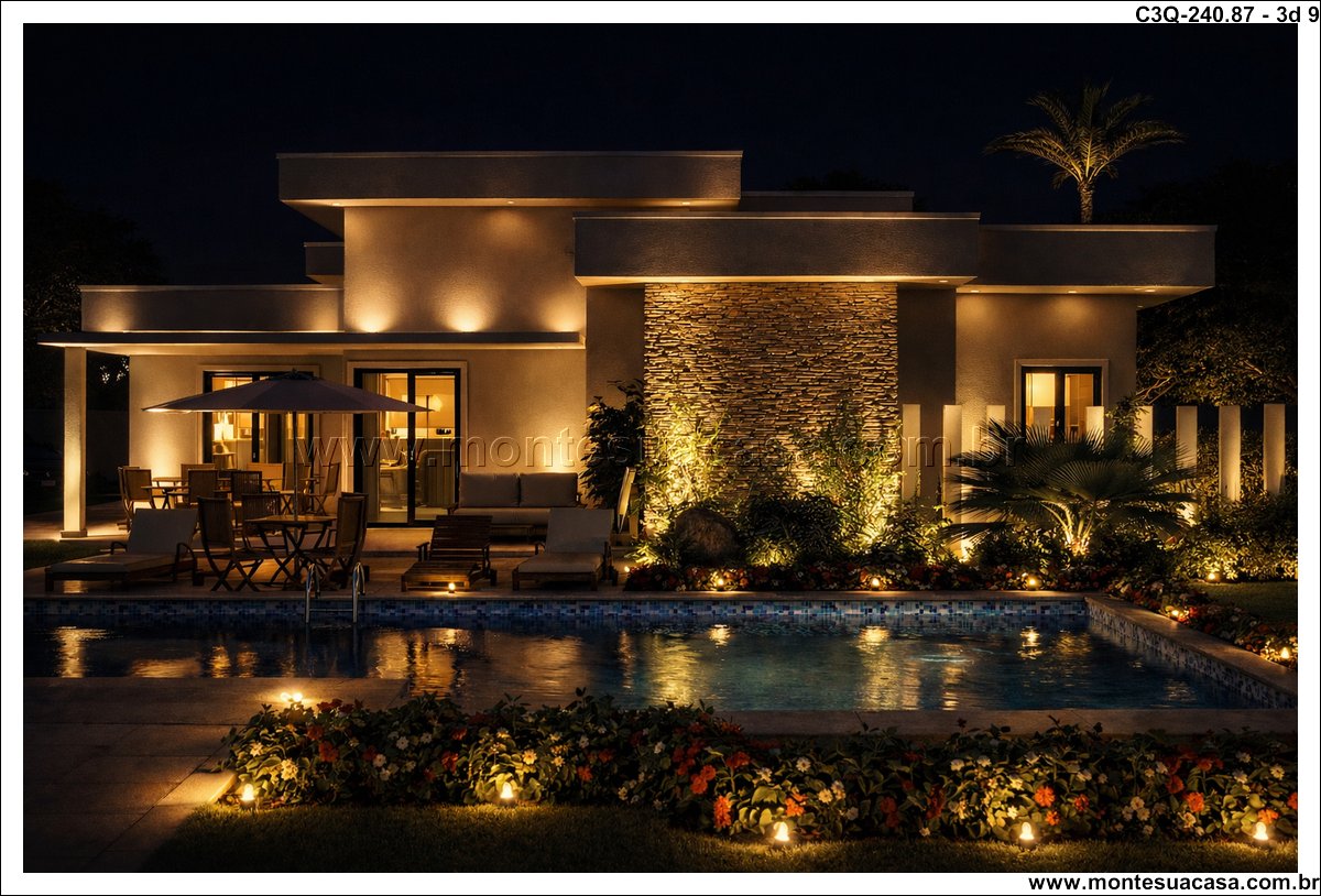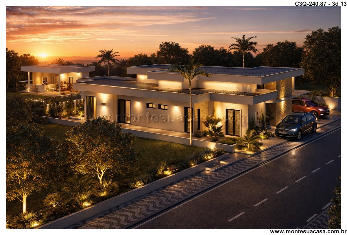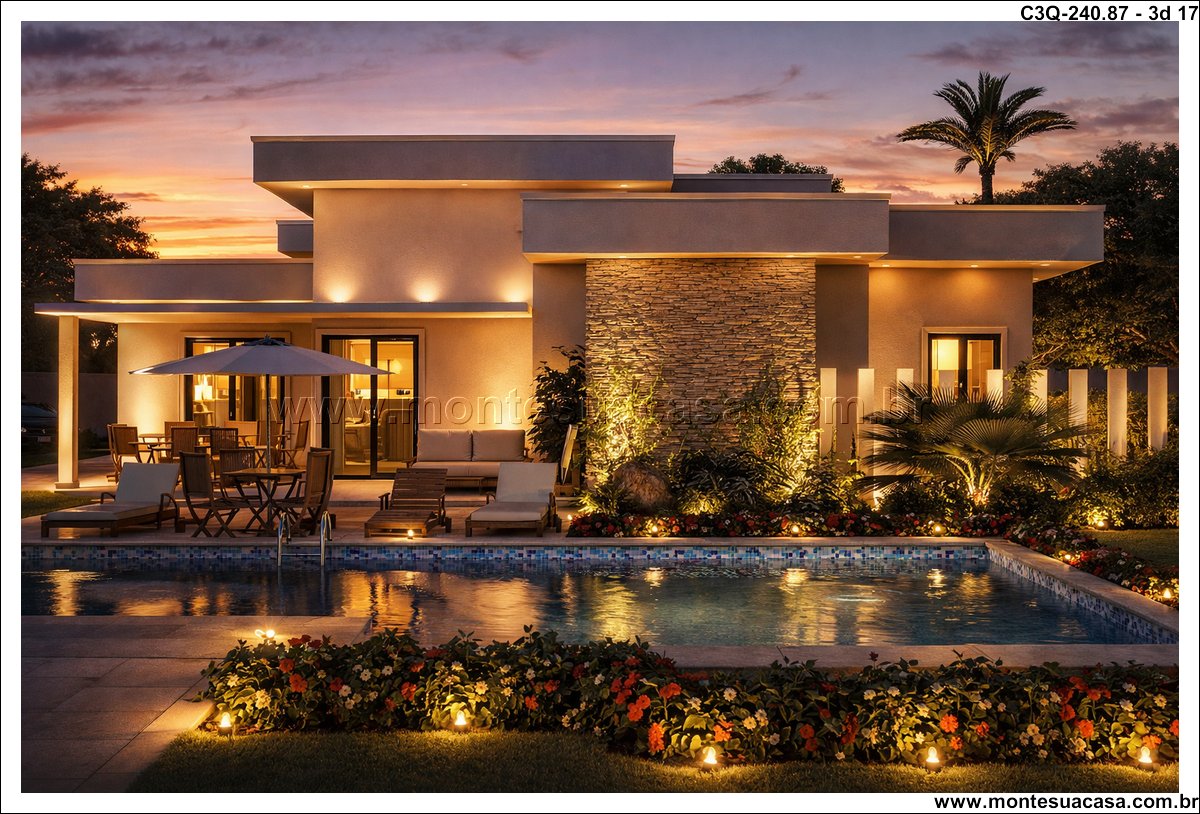 Projeto ideal para viver com qualidade e estilo Com 240,87m² de área construída, esta casa térrea de 3 quartos é perfeita para quem busca um lar moderno, funcional e com espaços pensados para o bem-estar.