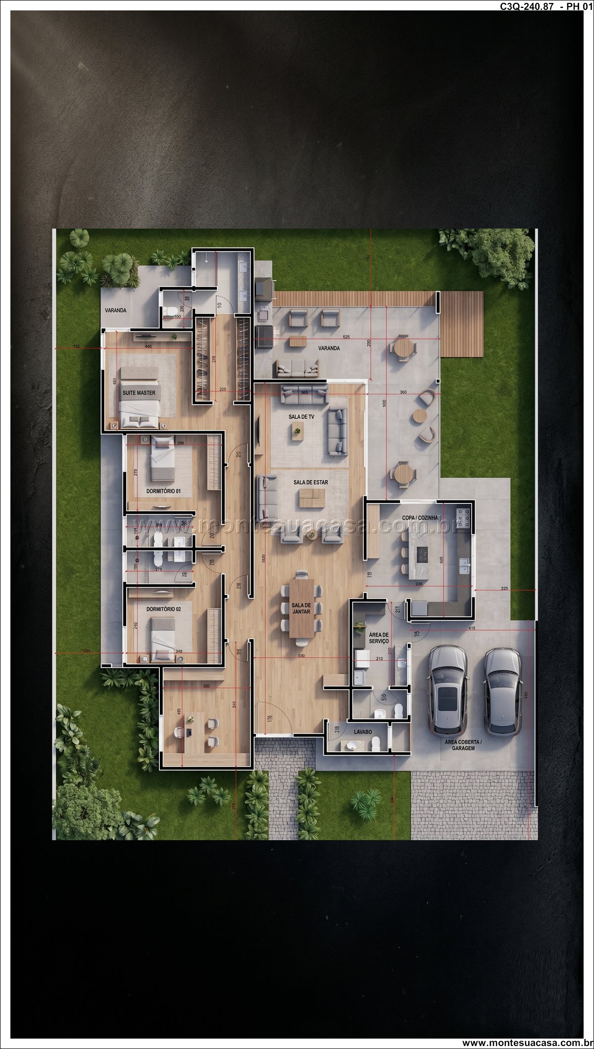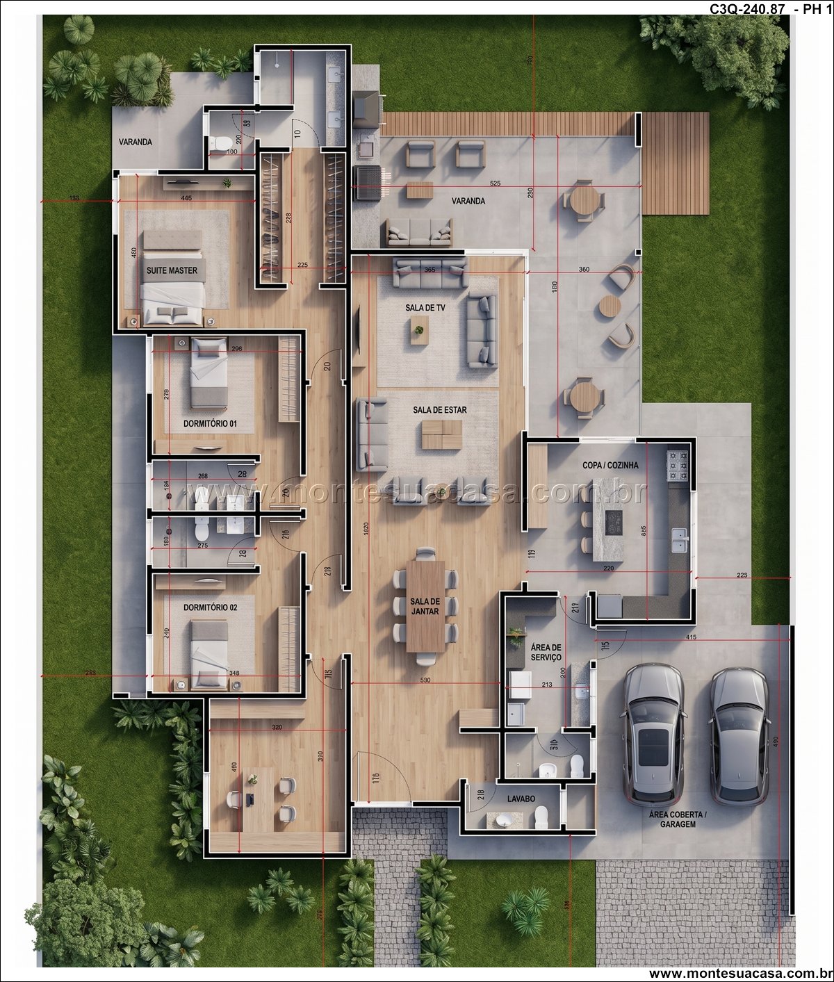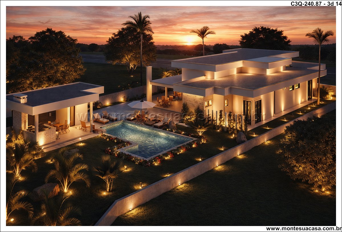 Projeto ideal para viver com qualidade e estilo Com 240,87m² de área construída, esta casa térrea de 3 quartos é perfeita para quem busca um lar moderno, funcional e com espaços pensados para o bem-estar.