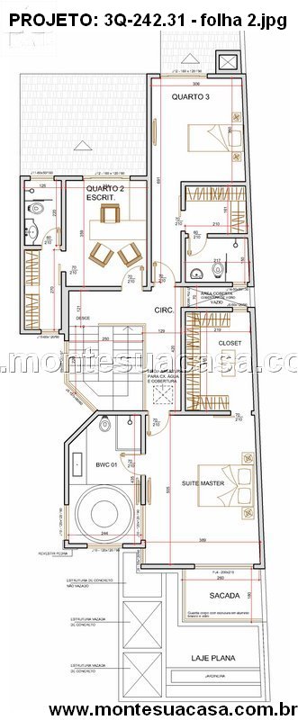 Pavimento superior com suíte master e escritório