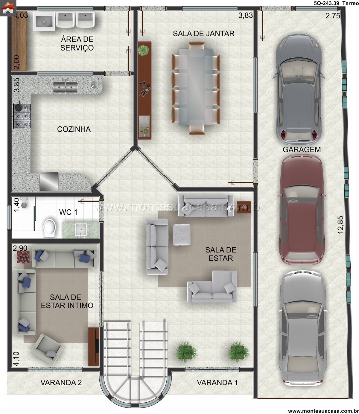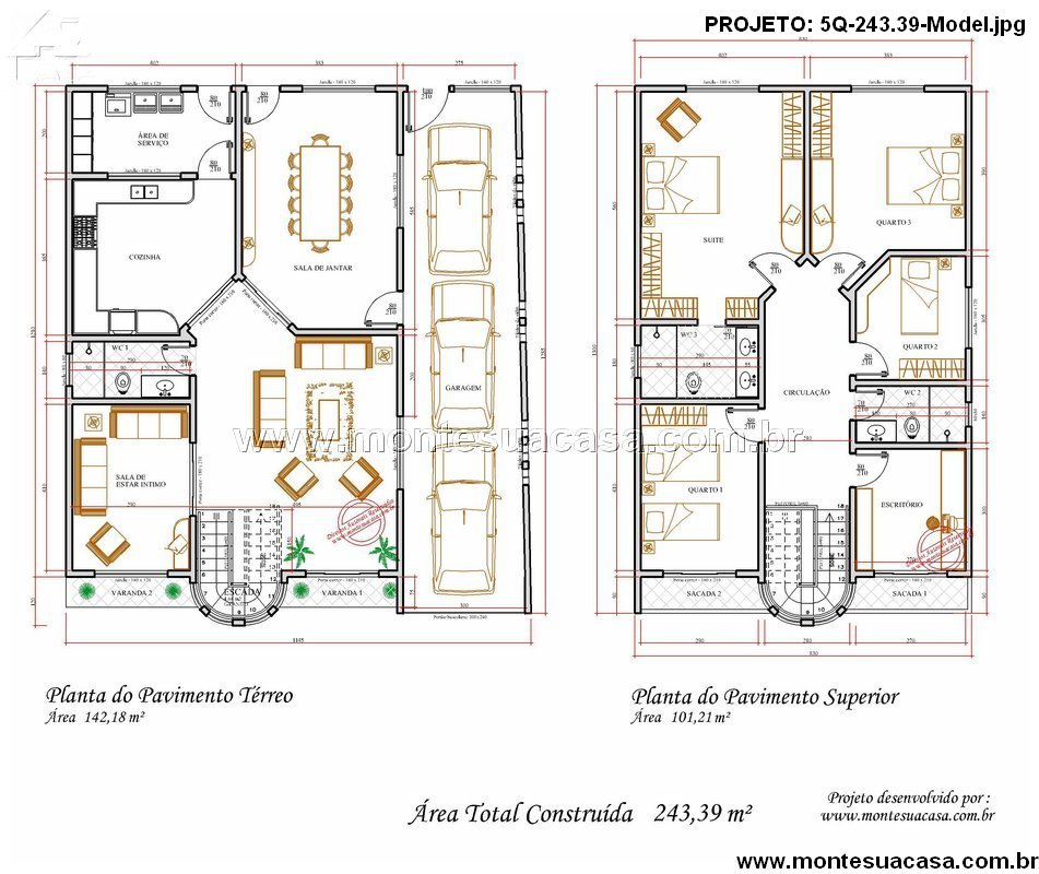 Esta residência moderna de 243.39 metros quadrados se espalha por dois pavimentos, oferecendo um espaço generoso e funcional para uma família. O projeto prioriza o conforto e o convívio, distribuindo os ambientes de forma inteligente entre o térreo e o superior. Com um total de cinco quartos, incluindo suítes, esta casa é ideal para quem busca praticidade sem abrir mão do estilo.
