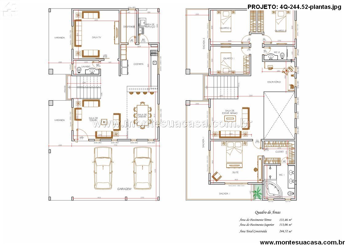 Este sobrado de 244,52 m² apresenta uma composição arquitetônica pensada para quem exige funcionalidade, conforto e integração entre ambientes sociais. O layout do pavimento térreo prioriza a convivência e oferece circulação fluida entre sala de estar, sala de jantar e cozinha. A varanda frontal e a varanda lateral complementam a área social, criando pontos de respiro visual e ampliando a sensação de espaço. Além disso, a sala de TV no térreo é uma solução estratégica para manter privacidade em atividades mais reservadas, sem interferir no movimento diário da casa.