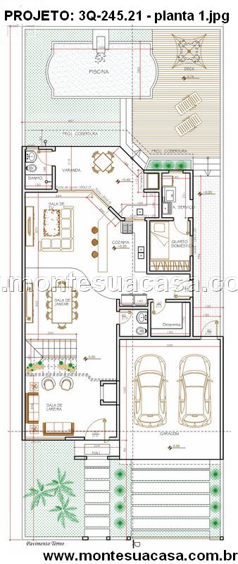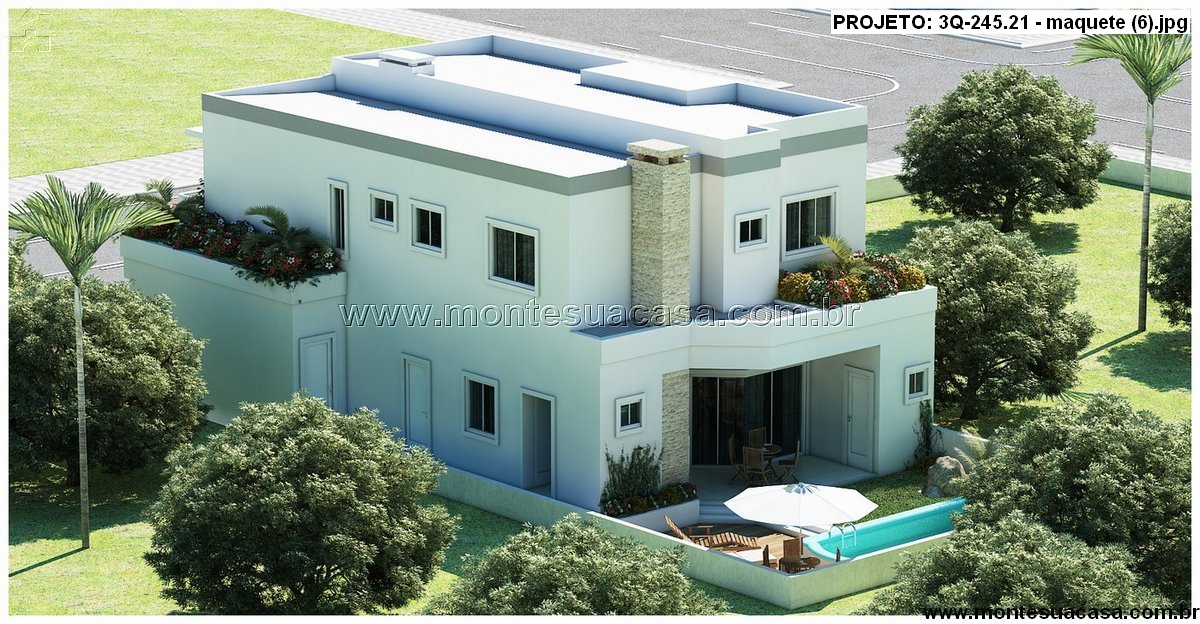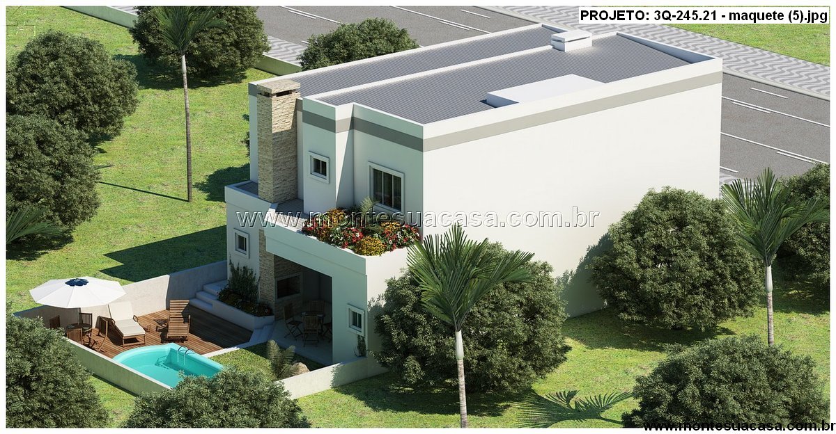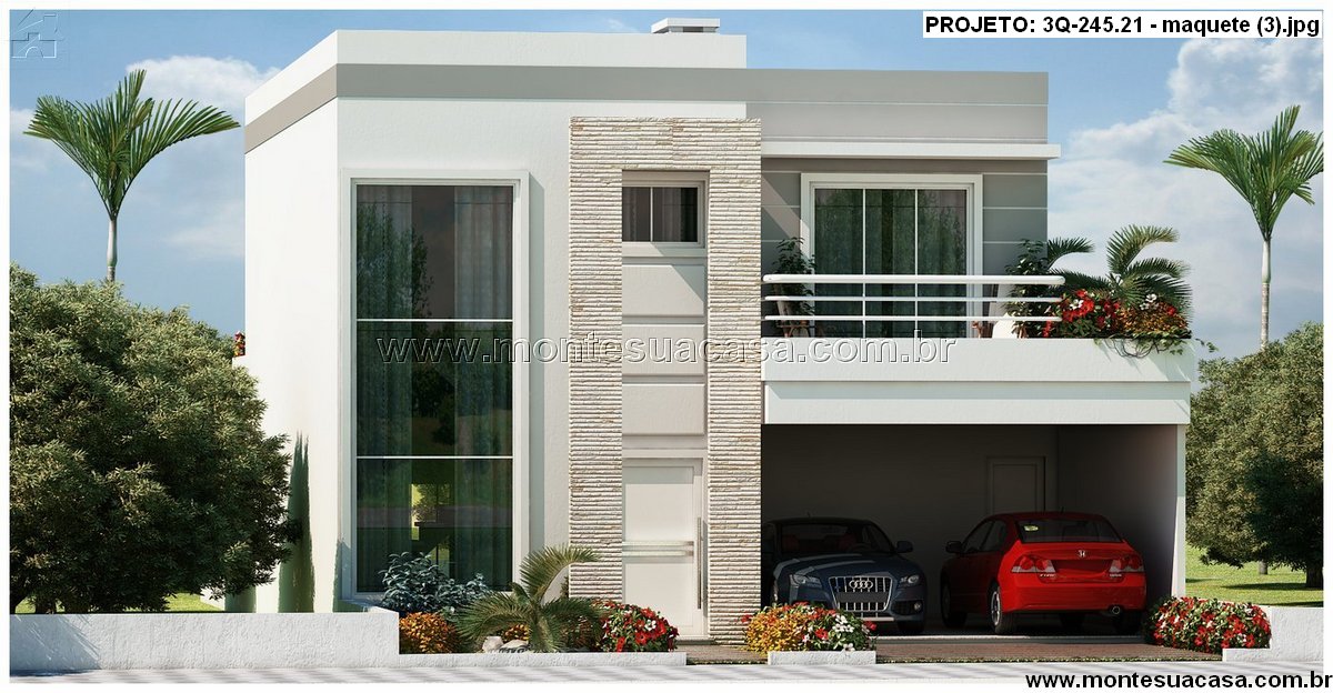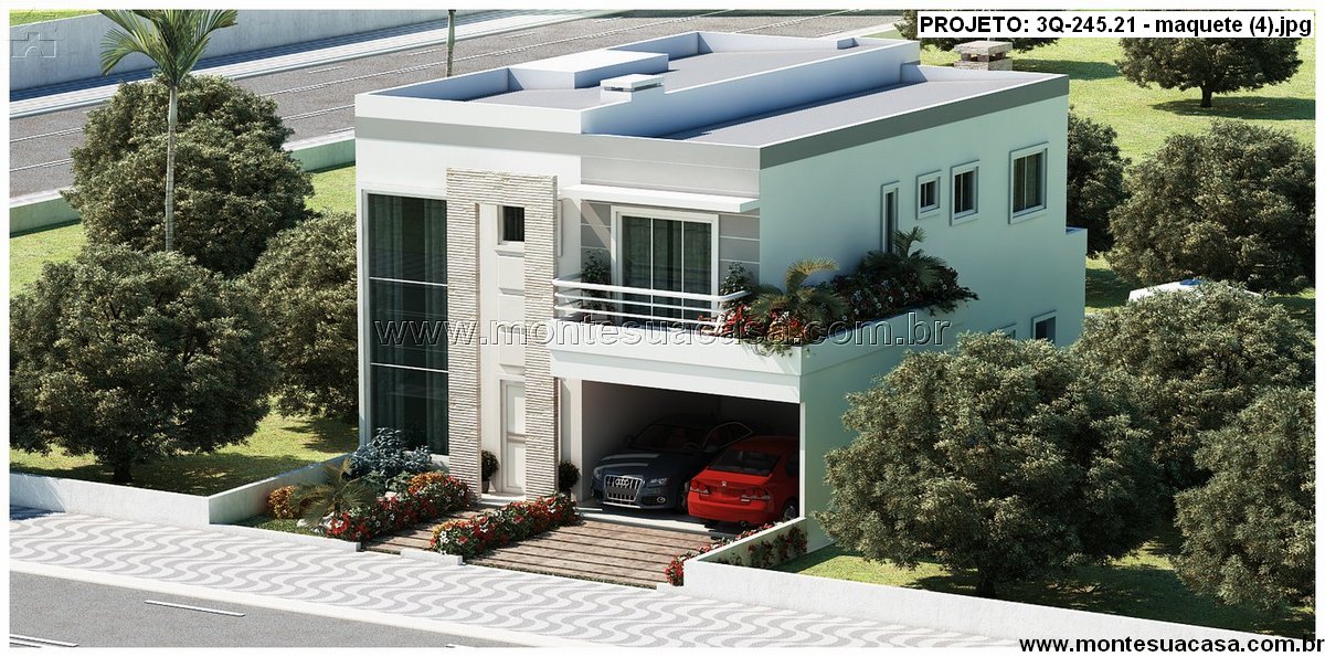 Este projeto de sobrado moderno com 245,21 m² combina elegância, funcionalidade e conforto em cada detalhe. Sua fachada imponente, com linhas retas e amplos painéis de vidro, reflete o estilo contemporâneo das casas mais desejadas. O uso de revestimentos em pedra natural e varandas ajardinadas adiciona sofisticação e leveza ao conjunto arquitetônico.
