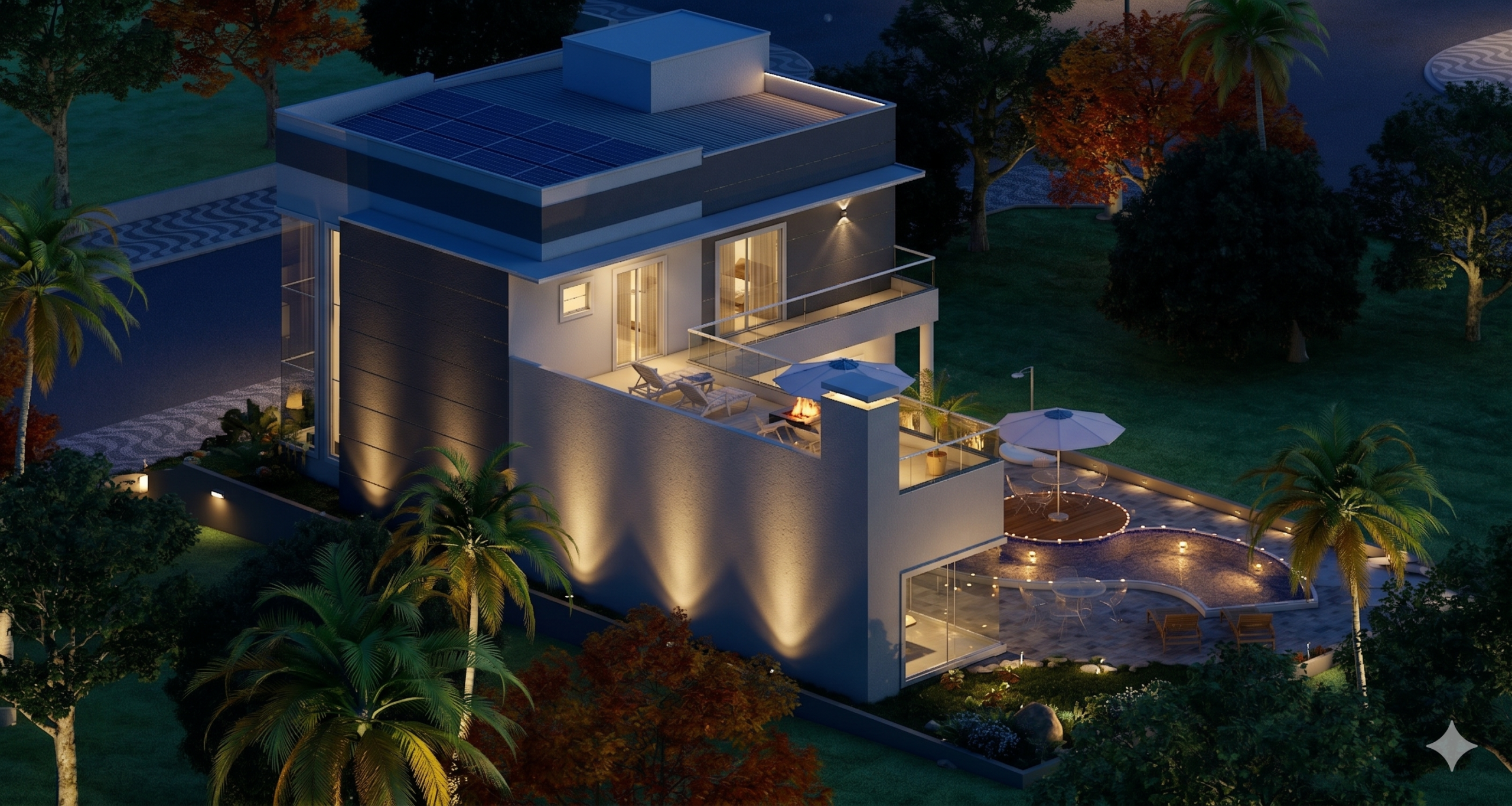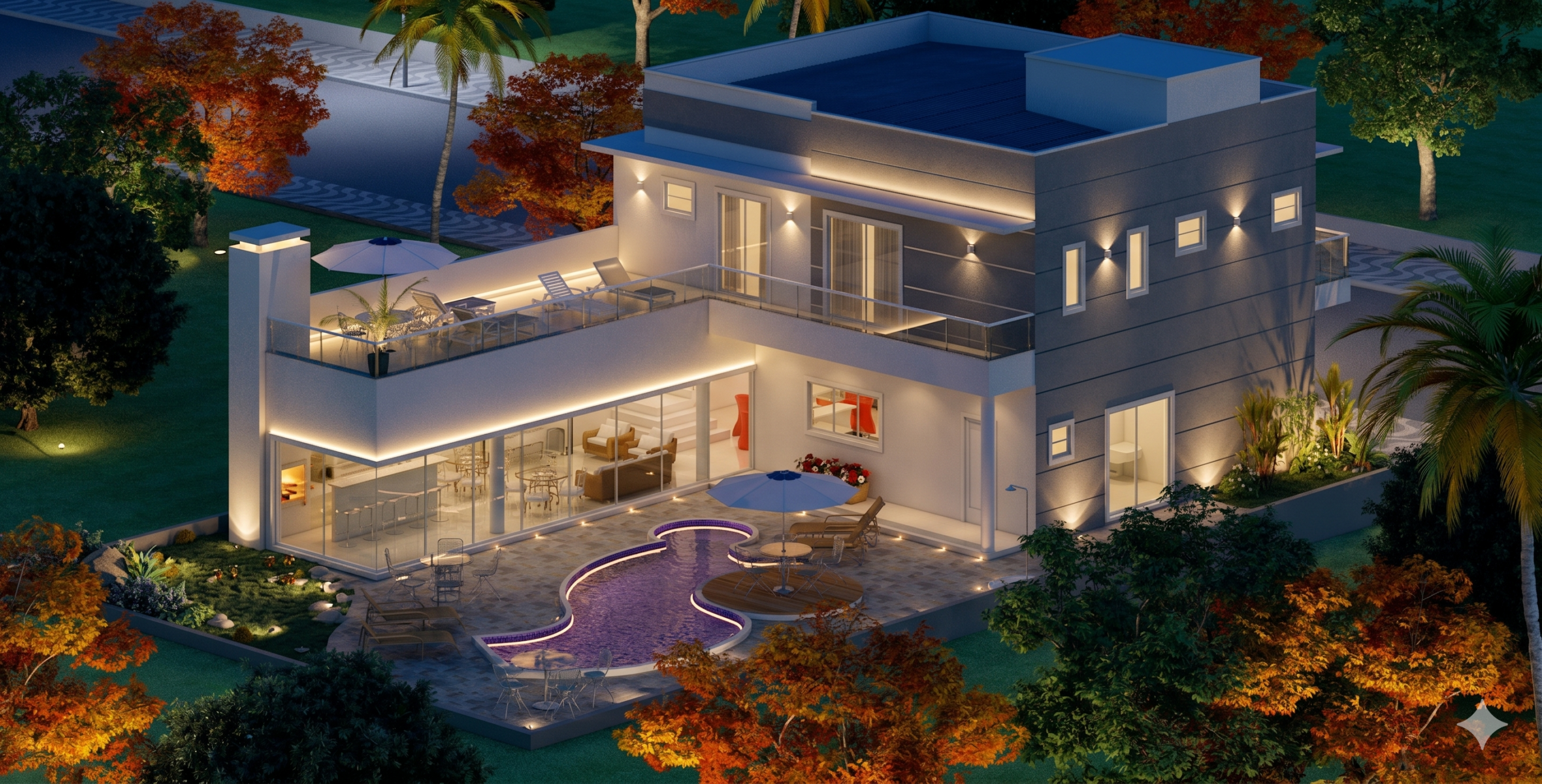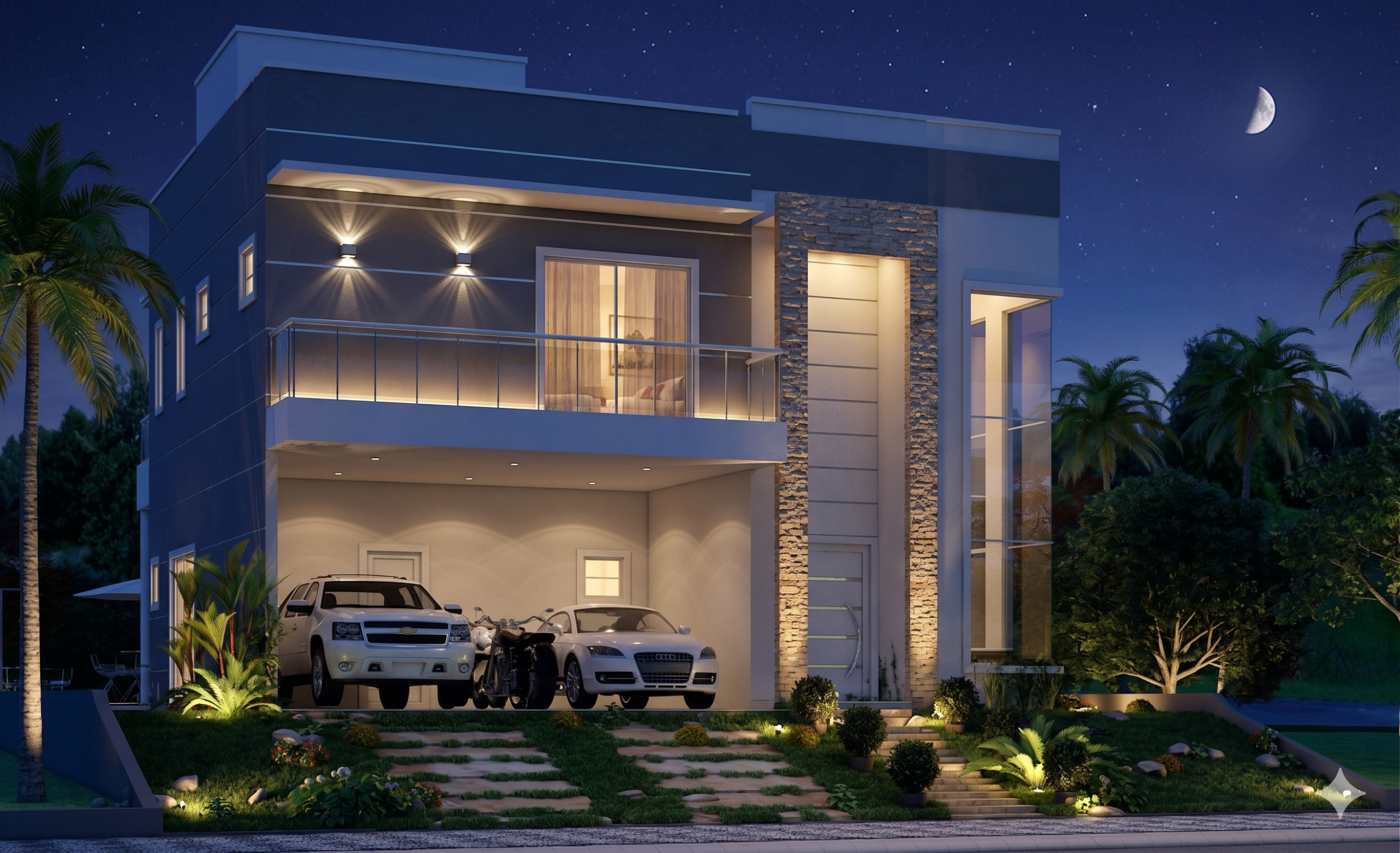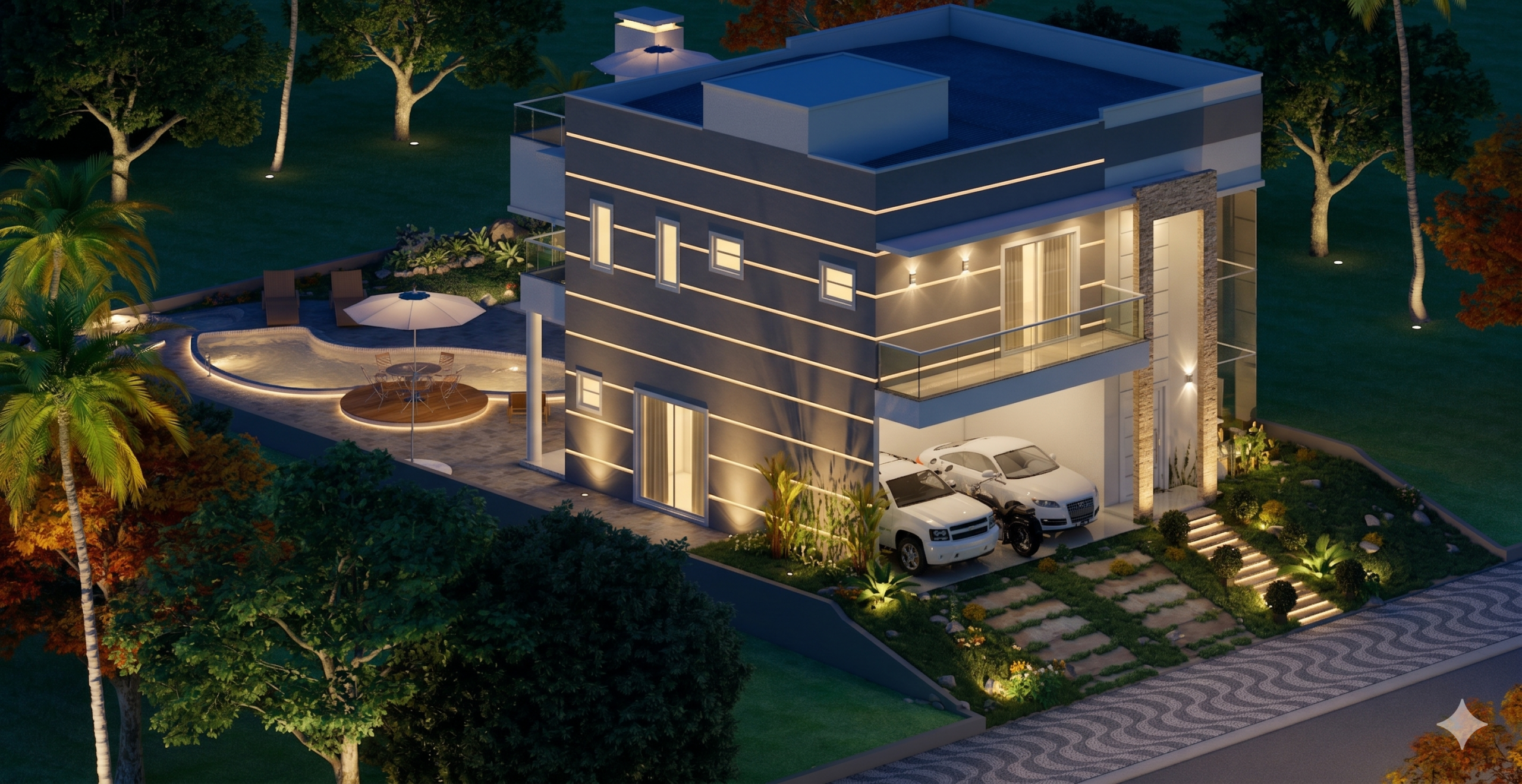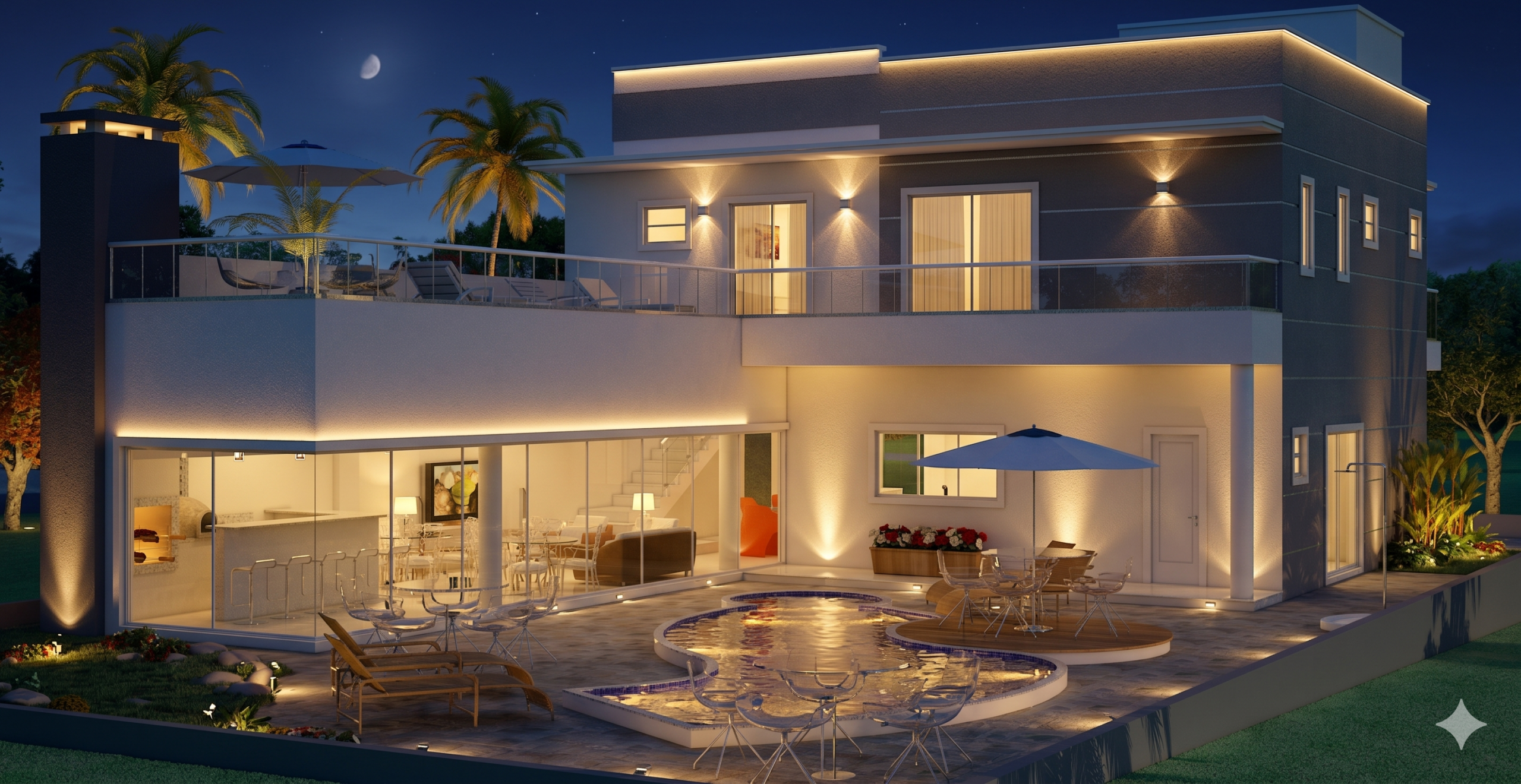 Este sobrado incorpora um conceito arquitetônico que valoriza a iluminação natural e a ventilação cruzada. Além disso, o projeto prioriza a otimização do espaço, eliminando áreas desperdiçadas e garantindo que cada metro quadrado seja aproveitado com inteligência. A circulação bem resolvida entre os ambientes cria uma sensação de amplitude e conforto, tornando a residência um verdadeiro lar. A presença de dois ambientes gourmet, um em cada pavimento, atende a diferentes momentos de descontração, desde um jantar íntimo até uma festa ao ar livre.