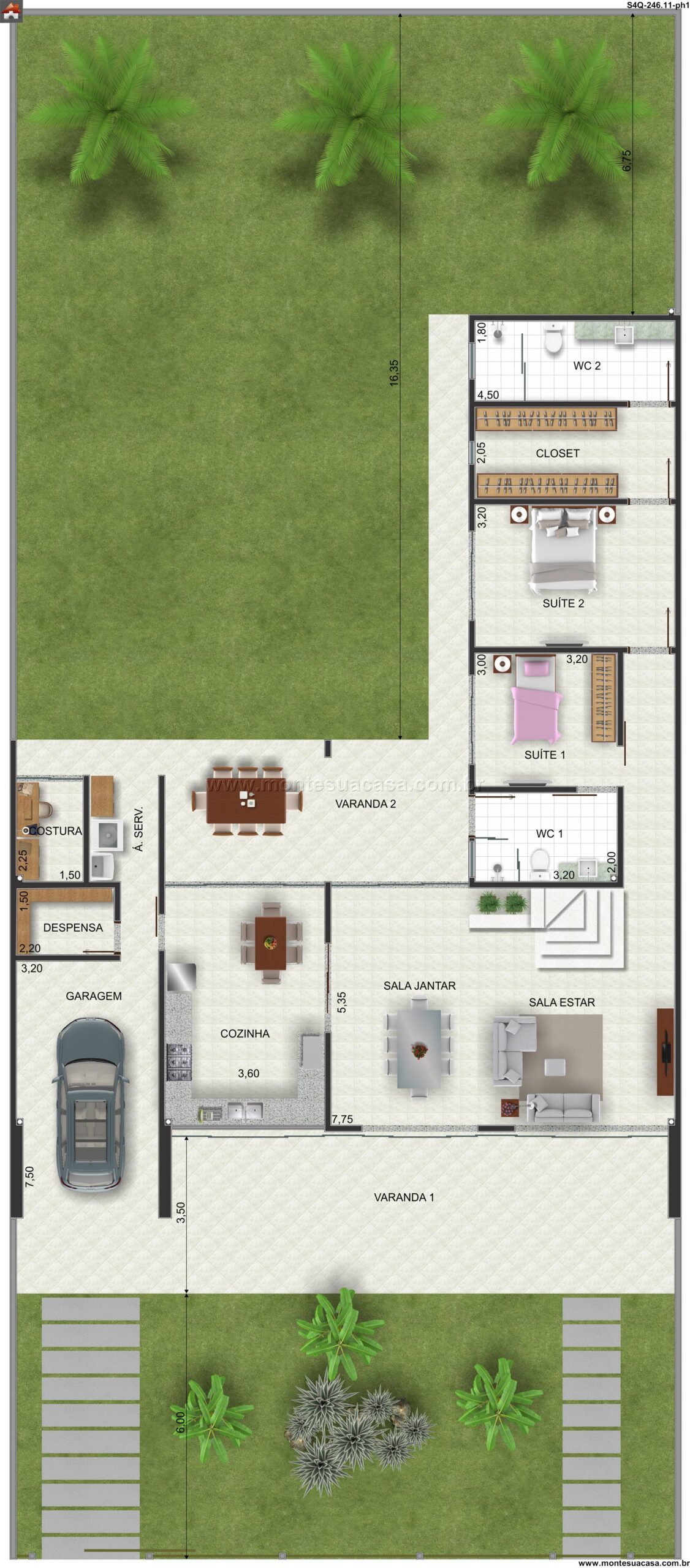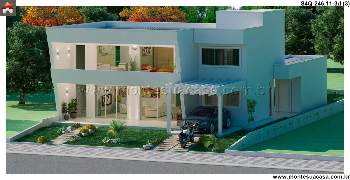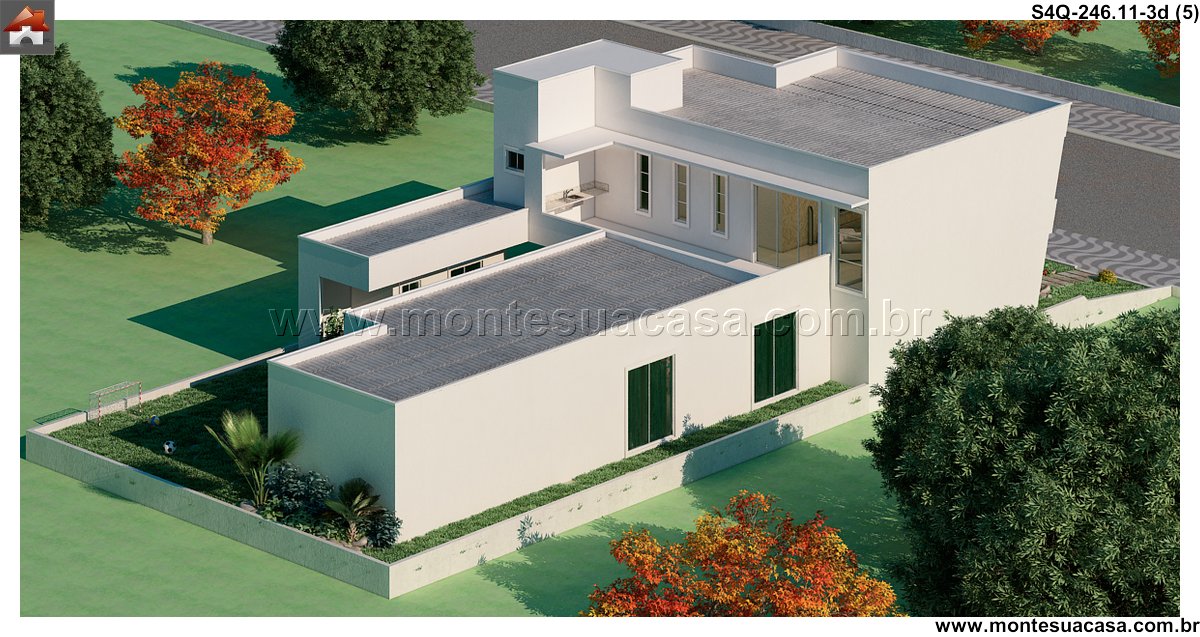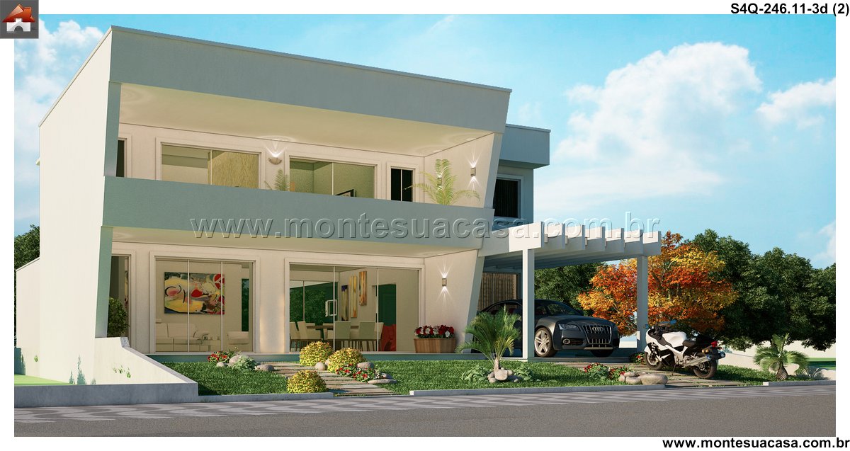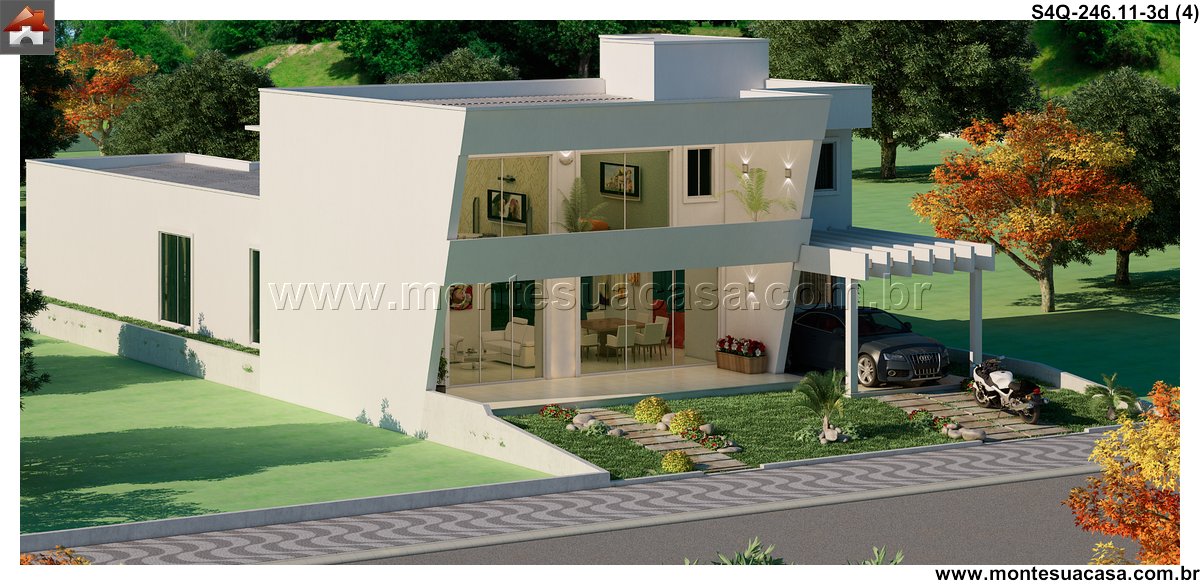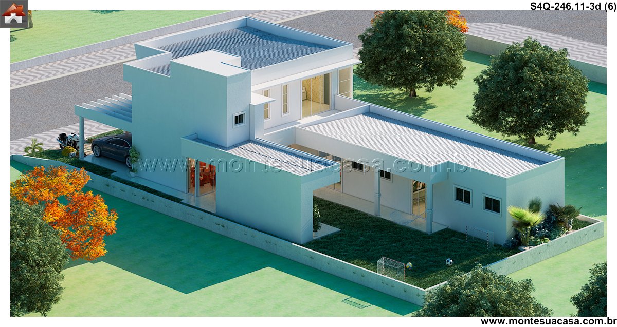 Este projeto de sobrado moderno, com 246.11 metros quadrados, redefine o conceito de sofisticação e funcionalidade para uma família. A residência se espalha por diversos ambientes meticulosamente planejados, criando uma sequência harmoniosa entre os espaços. A fachada imponente e as sacadas cobertas já prenunciam o conforto e a qualidade de vida que se encontram no interior.
