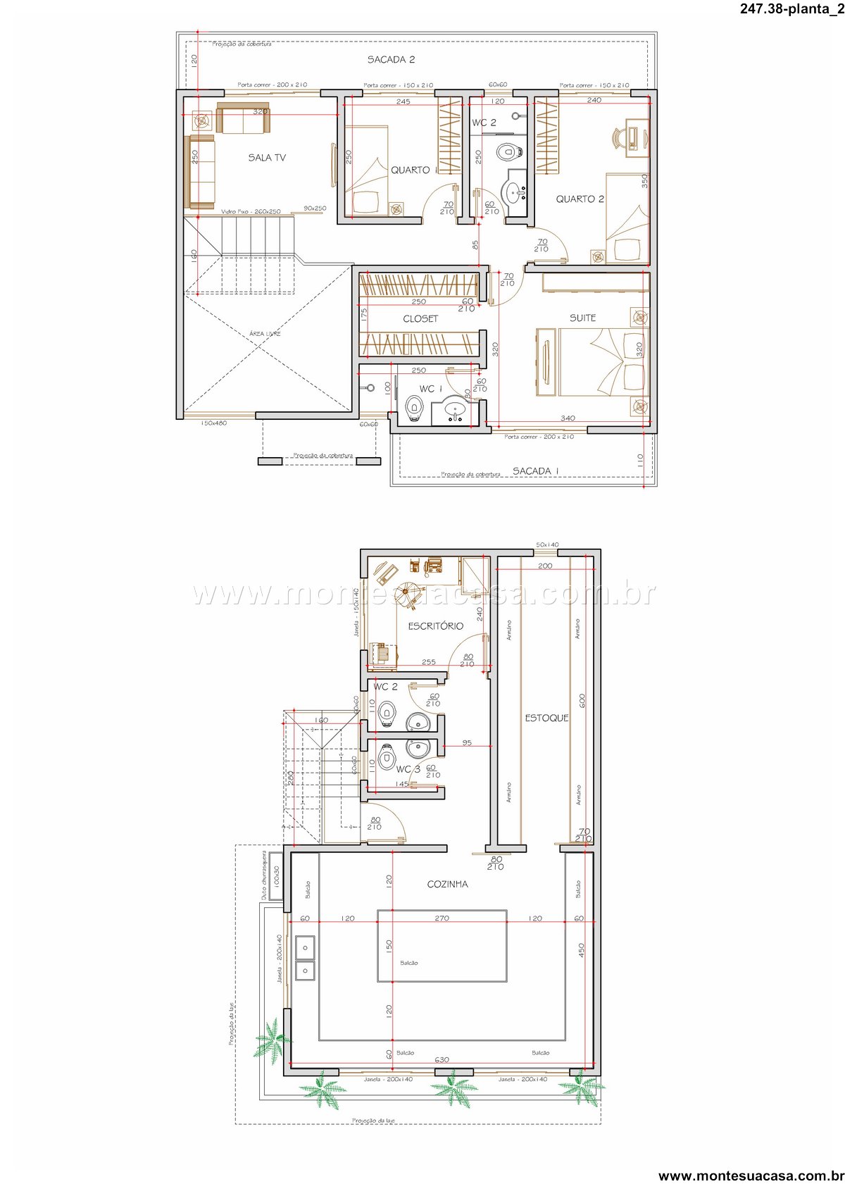 Sobrado nos fundos com três quartos e acesso independente Nos fundos do terreno, o projeto inclui um sobrado adicional com três quartos, ideal para moradia de familiares, aluguel ou expansão comercial. Com acesso separado, esse espaço oferece privacidade e flexibilidade, podendo ser adaptado para residência, escritório ou estúdio.