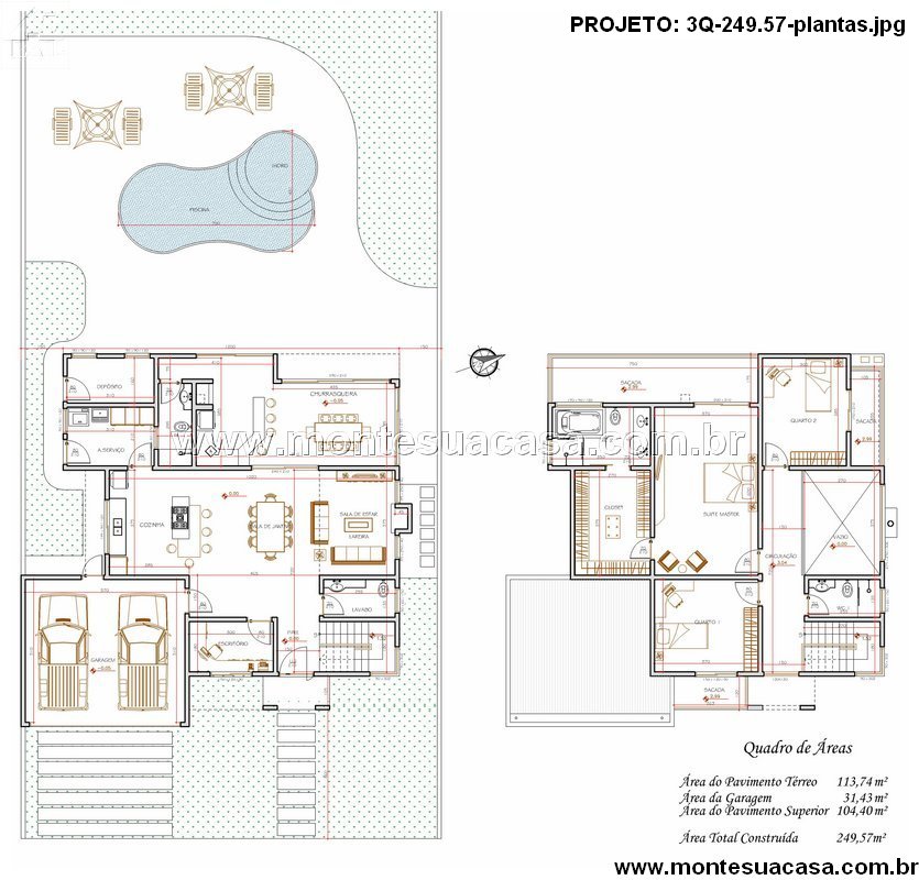 Projeto de Sobrado Moderno com 3 Quartos e Área de Lazer Completa