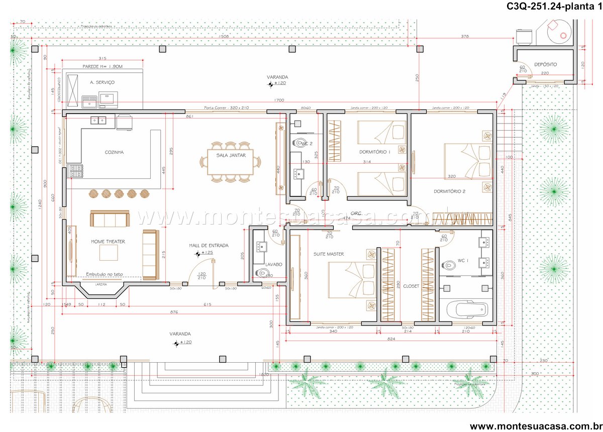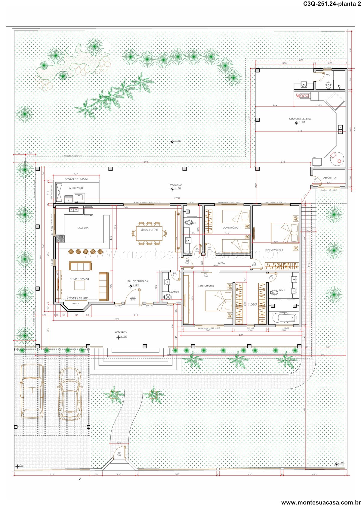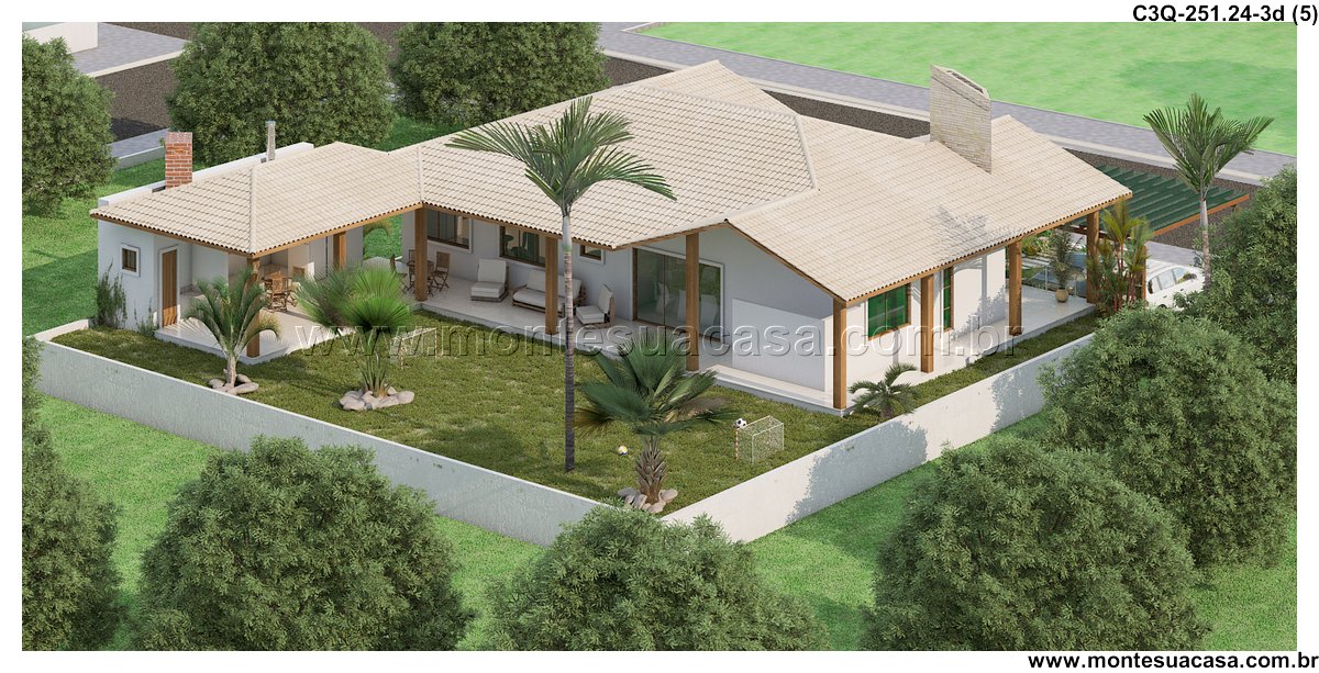 Este projeto de casa térrea com 251,24m² oferece uma combinação ideal entre conforto, funcionalidade e estética contemporânea. Com três quartos bem distribuídos, incluindo uma suíte master, a residência é perfeita para famílias que valorizam espaços integrados e ambientes acolhedores.