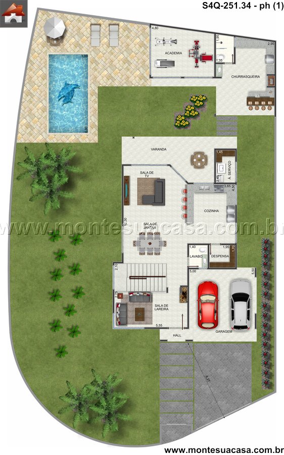 Este imponente sobrado moderno, com um projeto arquitetônico inteligente e fluido, foi concebido para proporcionar o máximo em conforto e praticidade para a vida familiar. A casa se distribui harmonicamente em dois pavimentos, integrando áreas sociais amplas no térreo e uma ala privativa completa com quatro suítes no superior. Cada detalhe foi pensado para criar uma experiência de morar única e acolhedora.