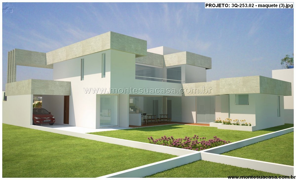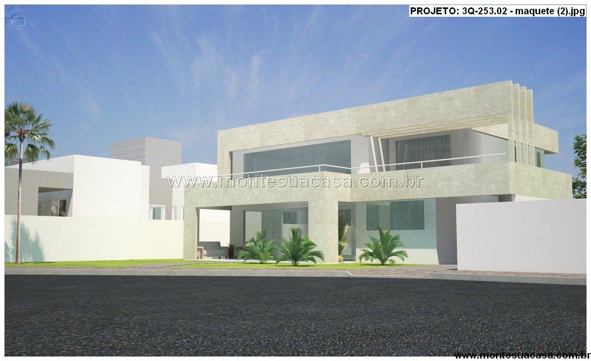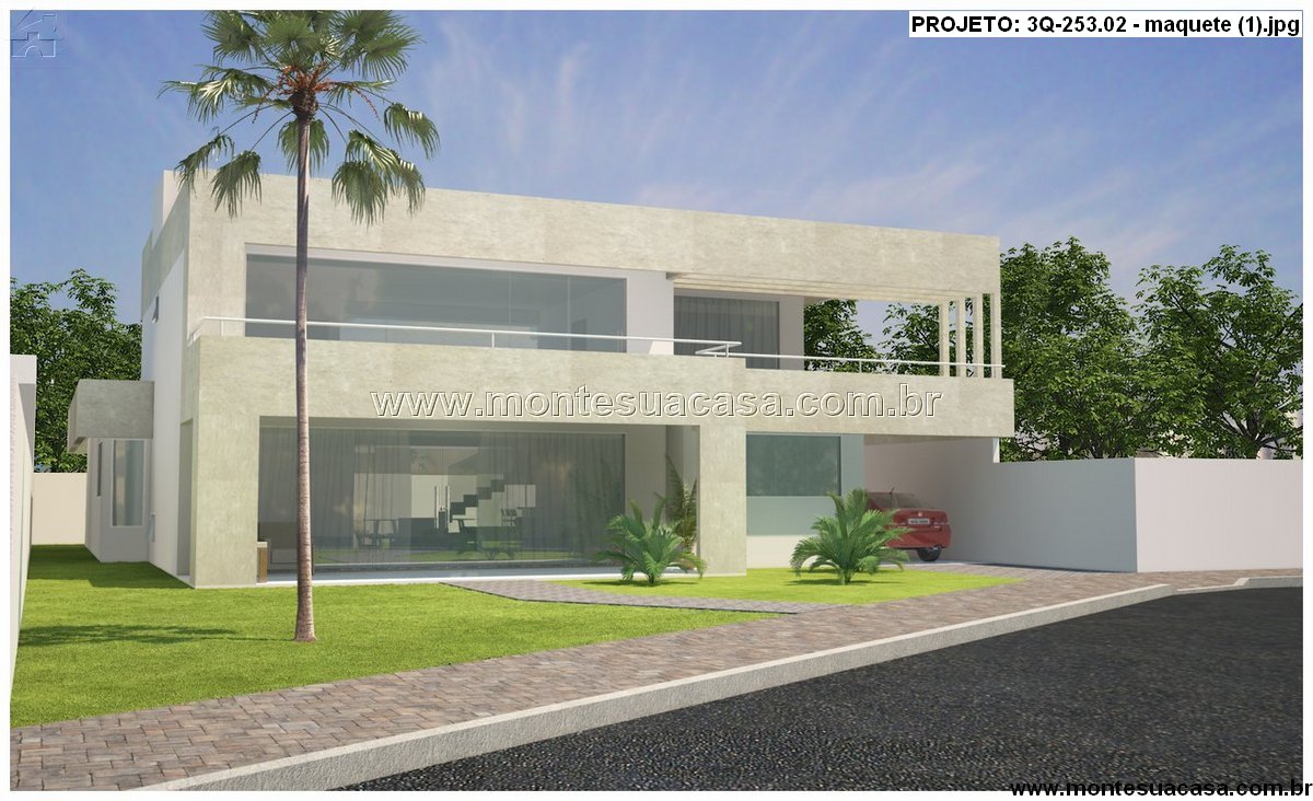 O projeto 3Q-253.02 apresenta um sobrado moderno com 253,02 m² de área total construída, ideal para famílias que valorizam o conforto aliado à estética contemporânea. A fachada impressiona com linhas retas, grandes panos de vidro e volumes geométricos bem definidos, proporcionando um visual elegante e sofisticado.