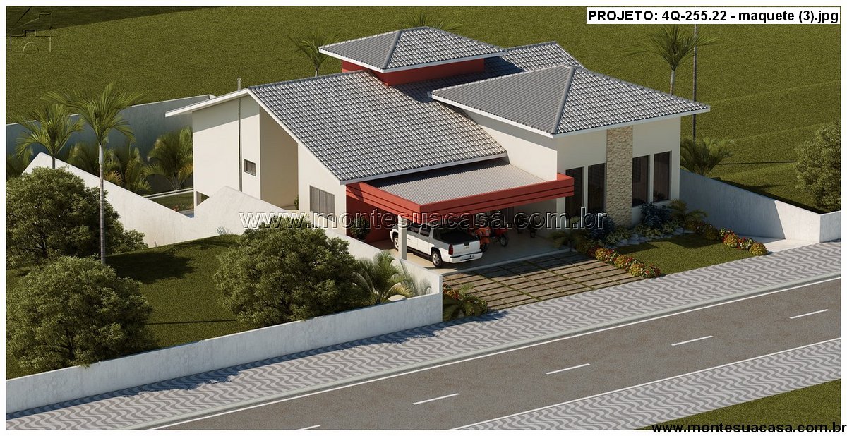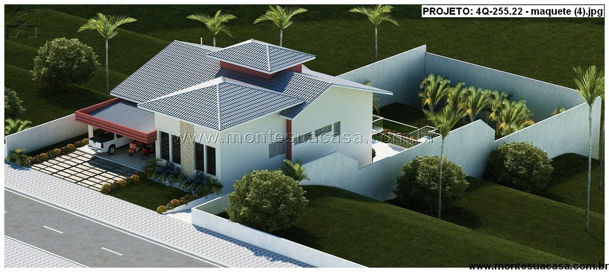 O uso de volumes assimétricos, telhados múltiplos e uma combinação equilibrada de cores e revestimentos reforça a estética contemporânea inspirada em casas modernas brasileiras. As grandes janelas garantem iluminação natural, enquanto a disposição lateral e posterior preserva a privacidade. O terraço superior e a varanda frontal completam o conjunto, criando pontos de observação privilegiados do entorno.
