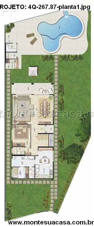 Este projeto arquitetônico de 267,87m² apresenta uma residência térrea moderna e funcional, ideal para famílias que valorizam conforto, integração e lazer ao ar livre. A planta foi cuidadosamente desenhada para oferecer fluidez entre os ambientes internos e externos, criando uma experiência residencial acolhedora e sofisticada.