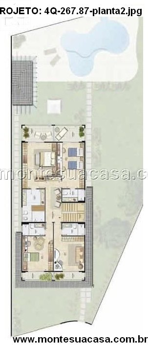 Funcionalidade e estética em harmonia Este projeto é ideal para terrenos amplos e planos, oferecendo uma solução completa para quem busca morar com estilo, praticidade e conexão com a natureza. A disposição dos ambientes favorece a privacidade dos quartos e a integração das áreas sociais e de lazer.