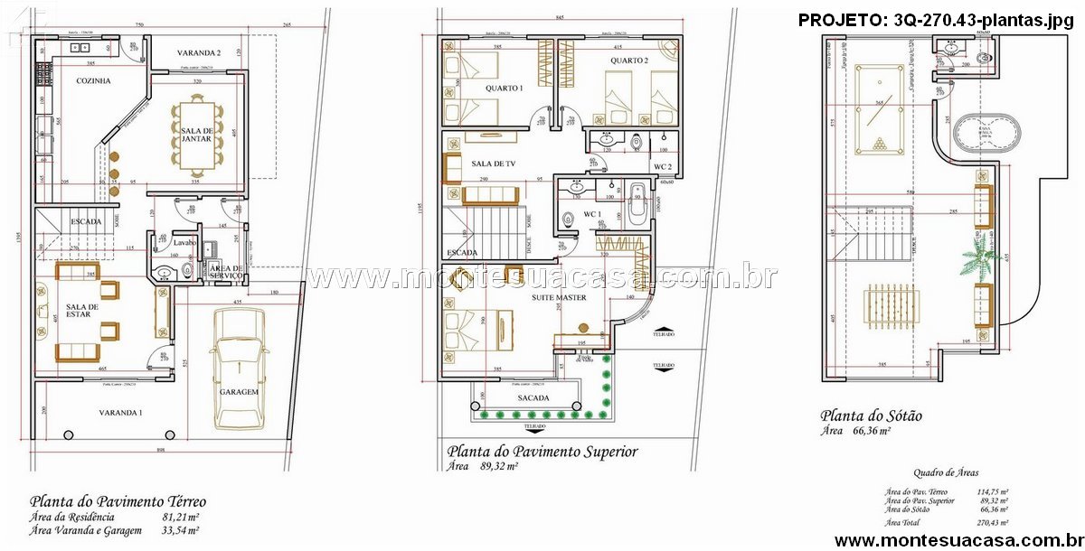 Com área total de 270,43 m², este projeto é ideal para famílias que buscam funcionalidade, estética e lazer em um só lugar. A distribuição inteligente dos cômodos, aliada ao paisagismo e à piscina, transforma o imóvel em um verdadeiro refúgio urbano.