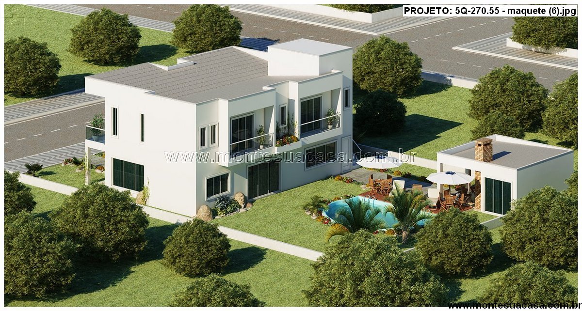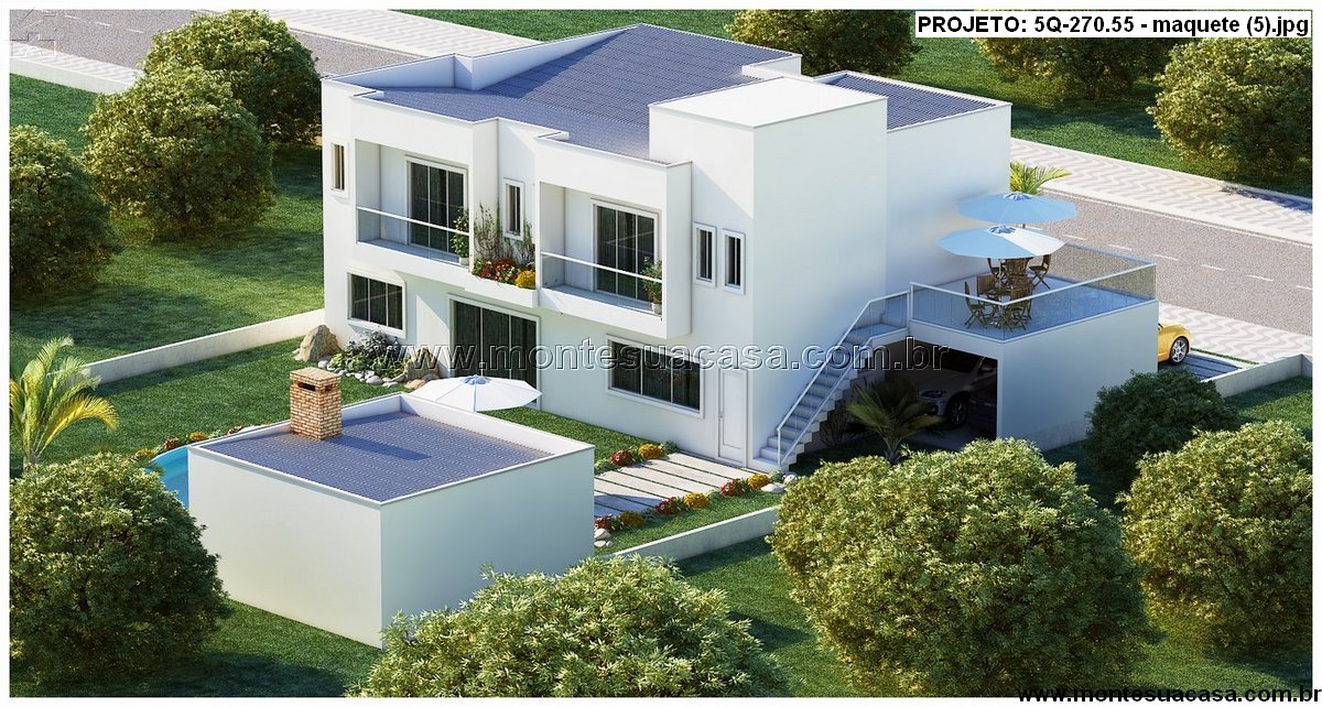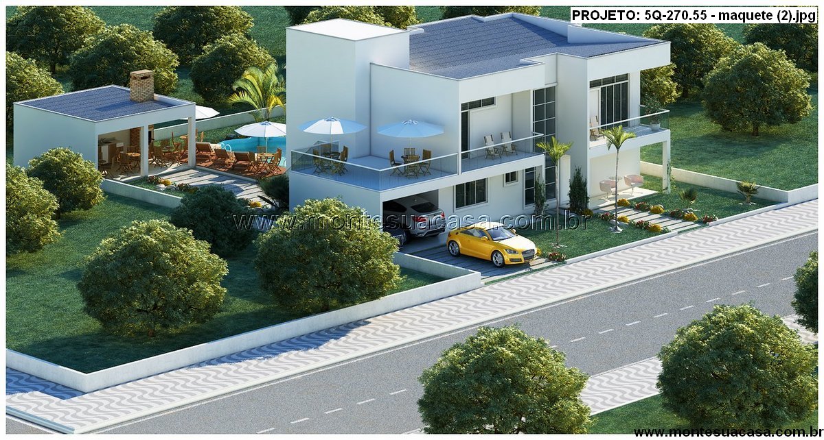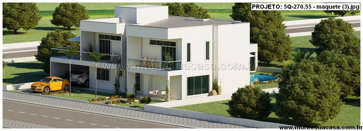 Projeto arquitetônico de sobrado moderno com 5 suítes
