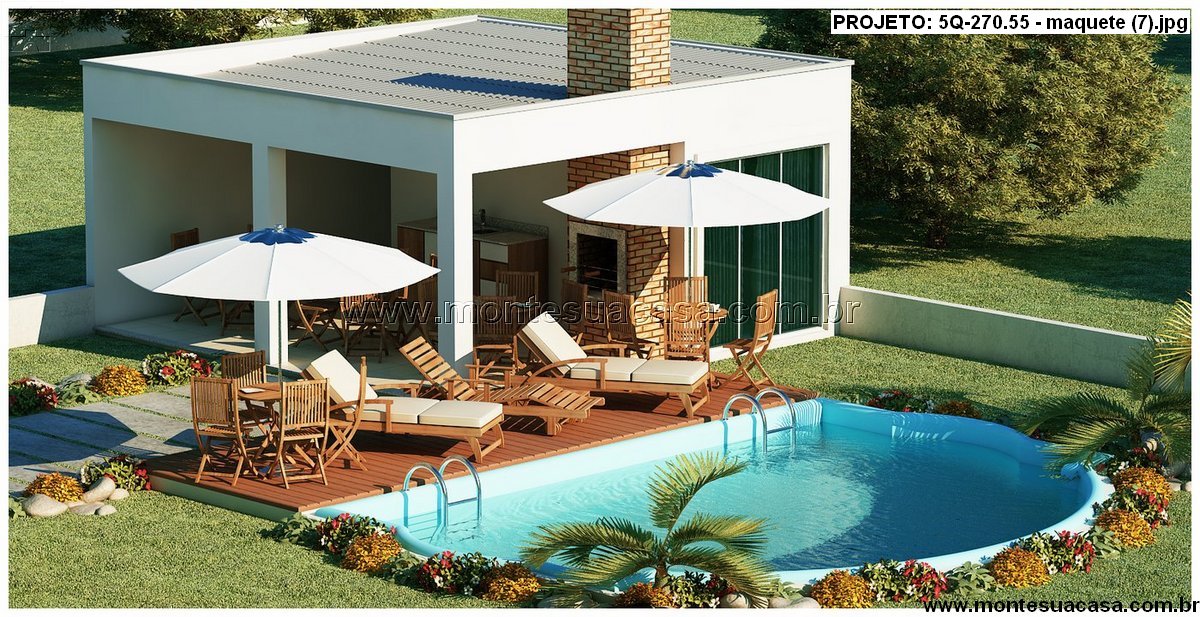 O terreno é aproveitado com inteligência, oferecendo piscina com prainha, terraço amplo e uma área gourmet totalmente coberta, equipada com churrasqueira e espaço para refeições ao ar livre. Esse conjunto transforma o fundo do terreno em um ambiente perfeito para encontros, descanso e convivência familiar.