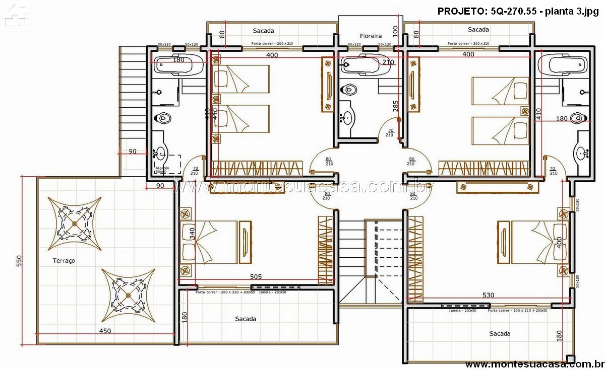 Pavimento superior com quatro suítes e sacadas