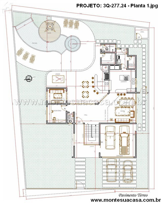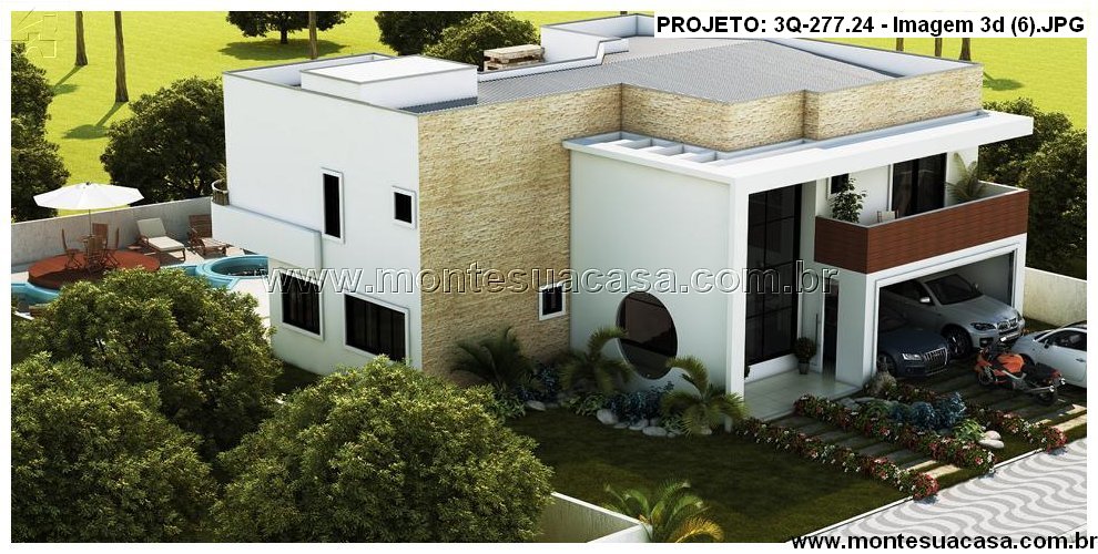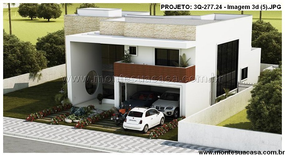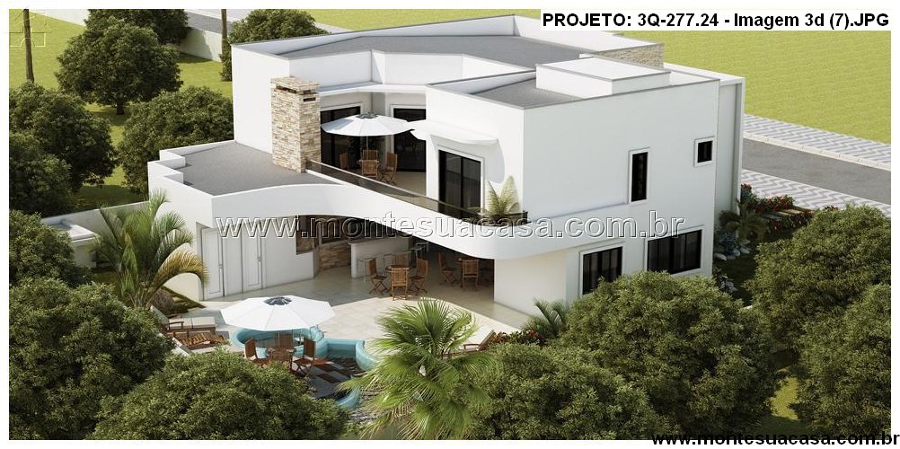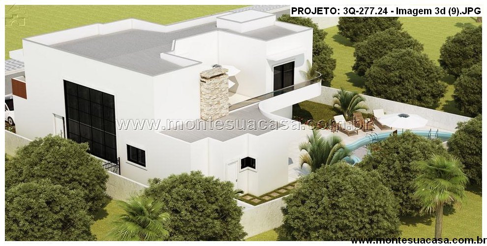 Projeto residencial moderno com 3 quartos e terraço