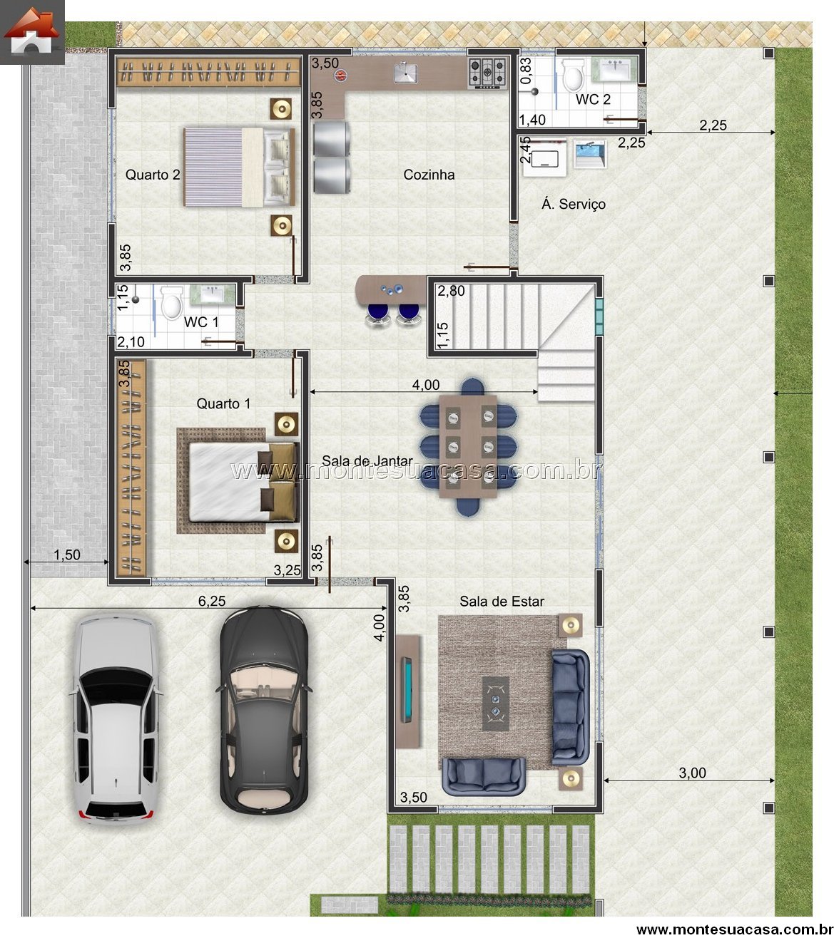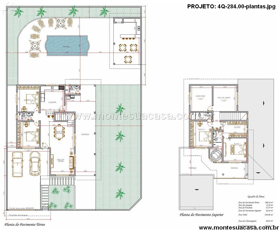 Este projeto de casa sobrado oferece uma combinação perfeita entre funcionalidade, conforto e estética contemporânea. Com 284,00m² de área total, a residência foi cuidadosamente planejada para atender famílias que valorizam espaços integrados e ambientes externos bem aproveitados.