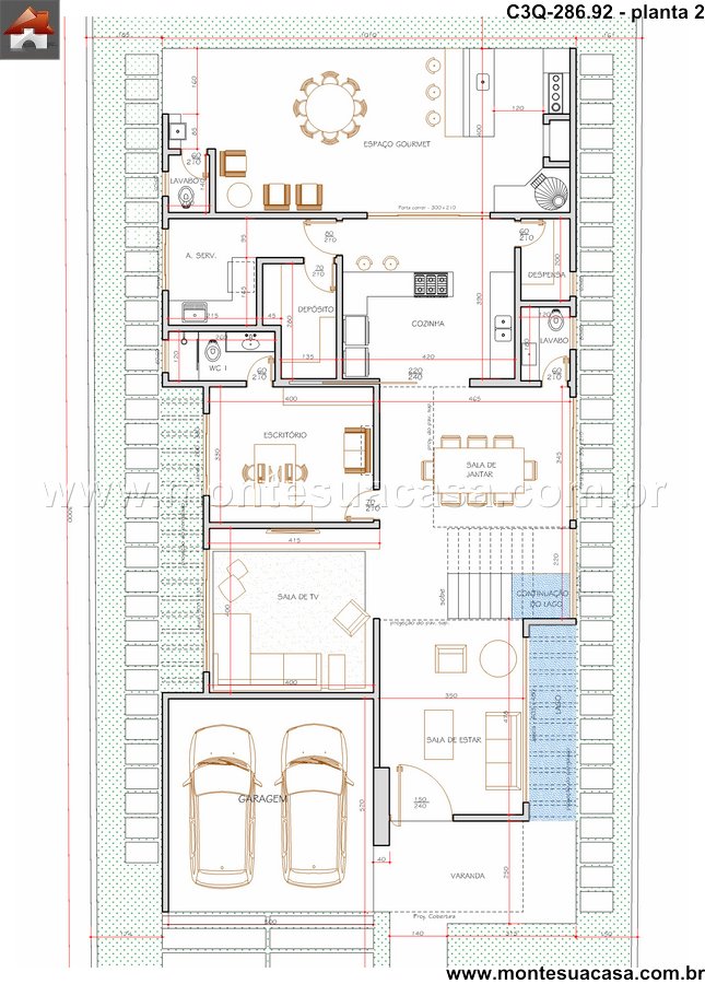 Este projeto de sobrado contemporâneo, com 286.92 metros quadrados, foi meticulosamente planejado para oferecer o máximo em conforto, funcionalidade e sofisticação. A residência se destaca pela sua volumetria moderna e pela integração harmoniosa entre os ambientes internos e externos, criando um fluxo suave e aconchegante para toda a família. Com três quartos bem distribuídos, o projeto atende perfeitamente às necessidades de uma vida moderna e dinâmica.