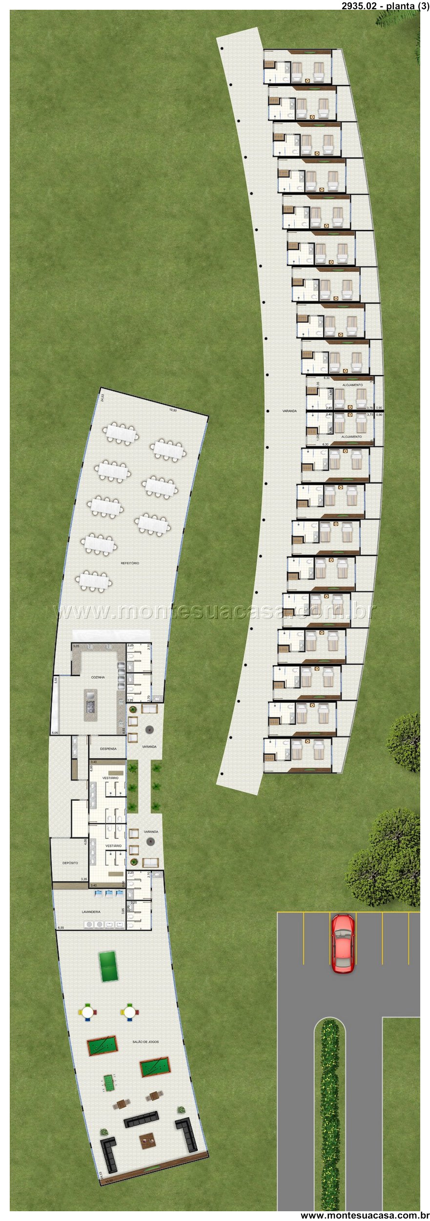 Este projeto de 2935,02m² foi desenvolvido para atender às demandas de um centro de treinamento de futebol moderno, funcional e completo. Ideal para clubes profissionais, escolas esportivas ou iniciativas públicas voltadas ao desenvolvimento de atletas, o espaço combina infraestrutura esportiva de alto desempenho com áreas de suporte médico, lazer e convivência.
